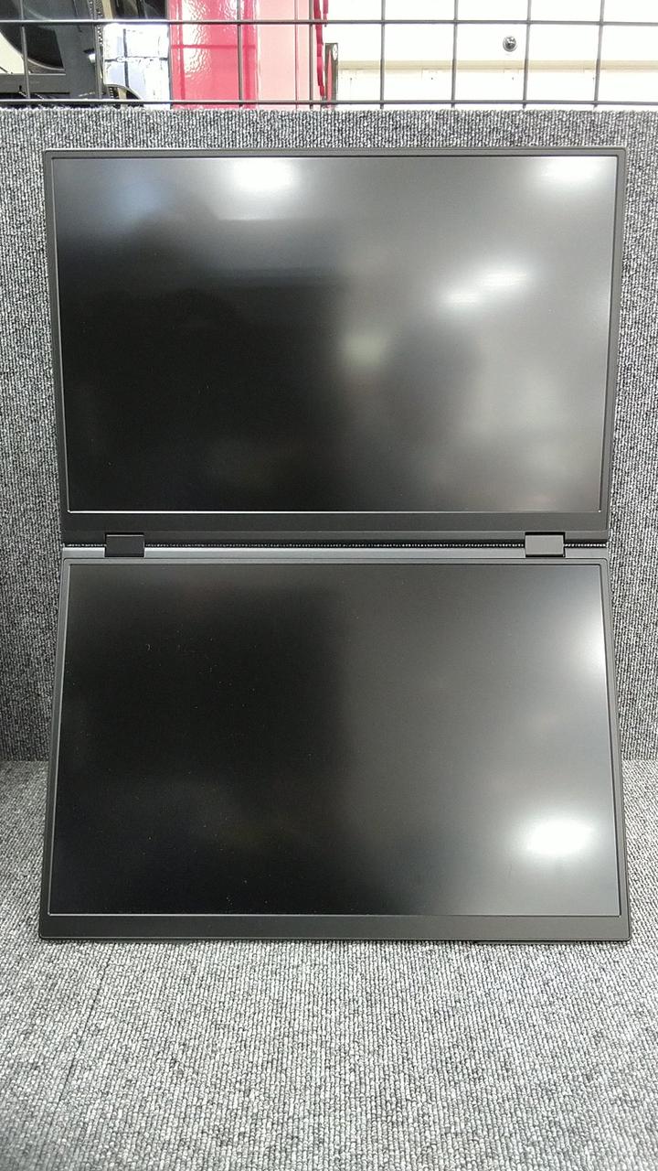 2つの画面の結合や分離が出来る、折りたたみ式16インチデュアルモバイルモニター!! |