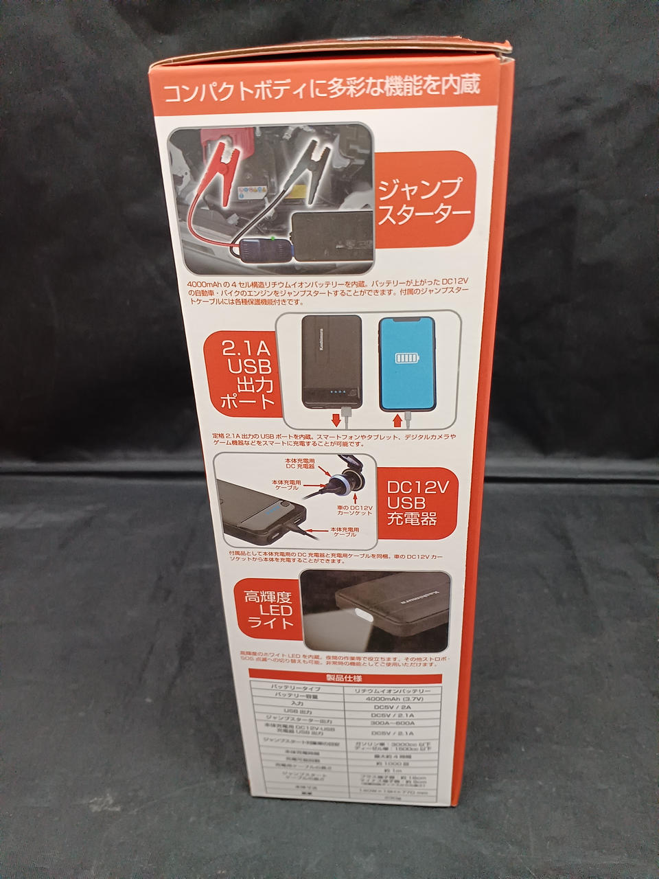 4000mAhバッテリー内蔵のジャンプスターター |