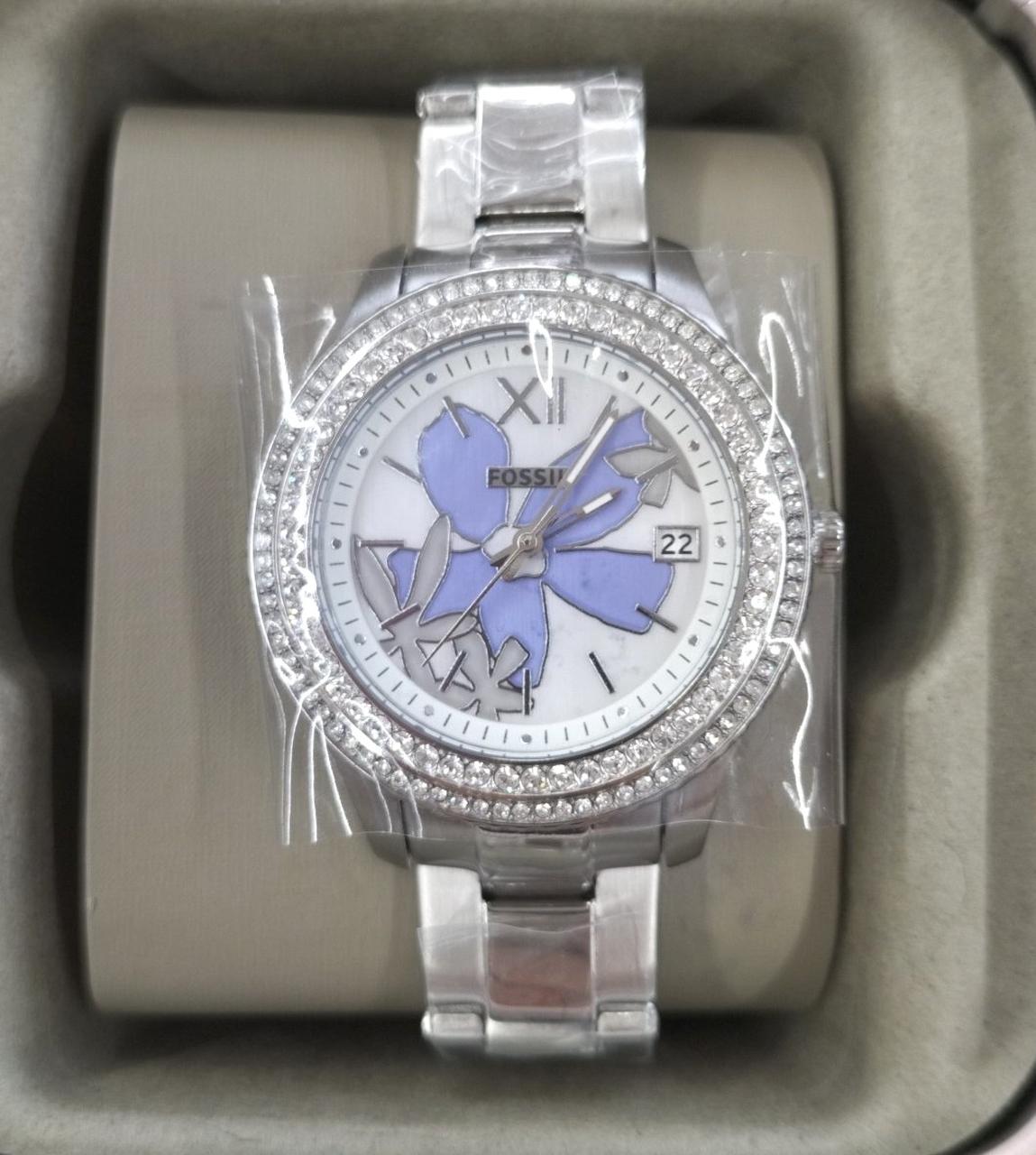 サテン仕上げのマルチカラーダイヤルに、ステンレススチールブレスレットの組み合わせ |