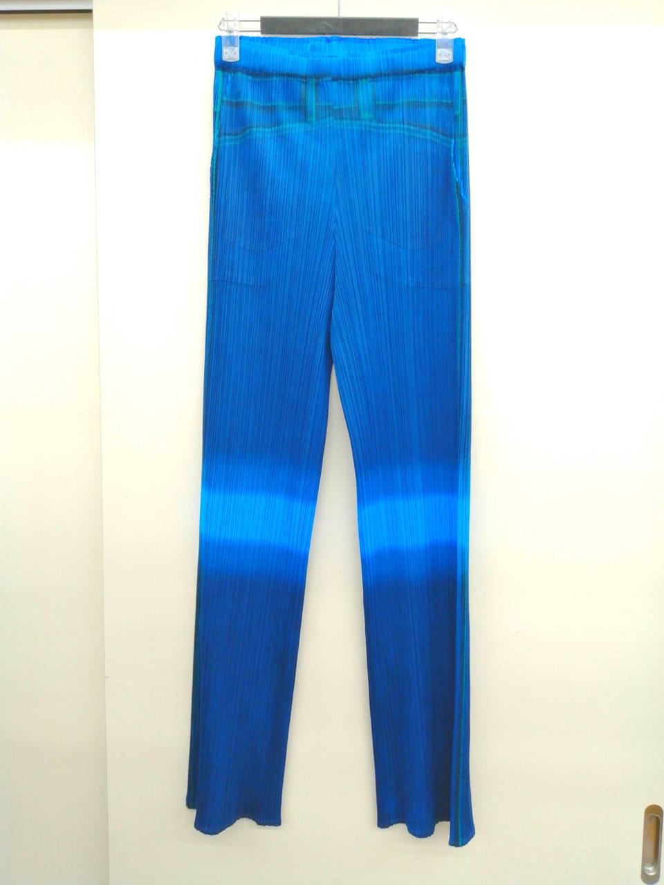 珍しいブルーデニム風の、PLEATS PLEASEシリーズのパンツ、鮮やかなブルーが目を引きます! |