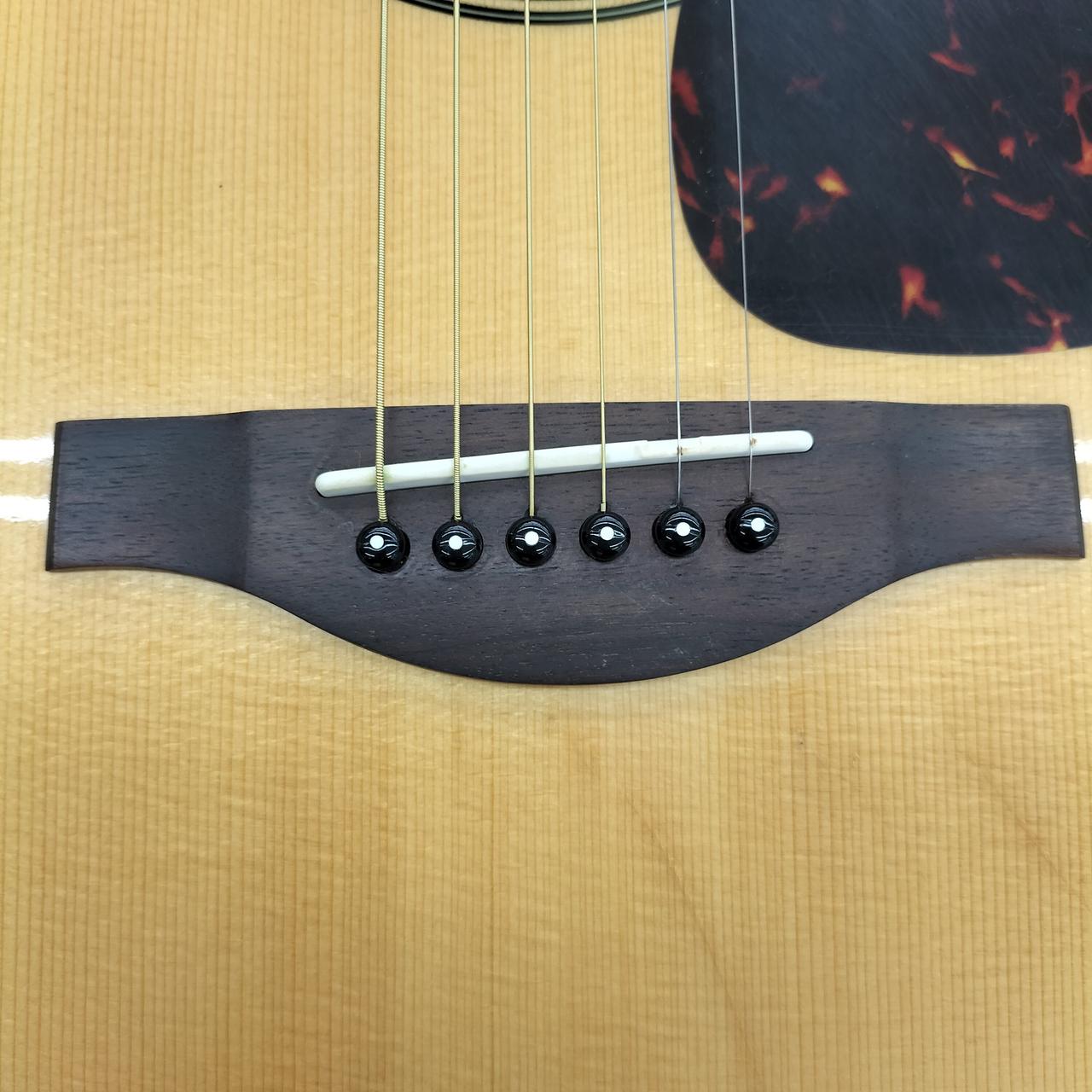 日本が世界に誇るYAMAHAのエレアコ。トップ材にイングルマンスプルースの単板を使用した本格的な作りの1本。またパッシブタイプのPUを搭載し、ライブの際にアンプ、PAからも出力出来る実用的モデル。 |