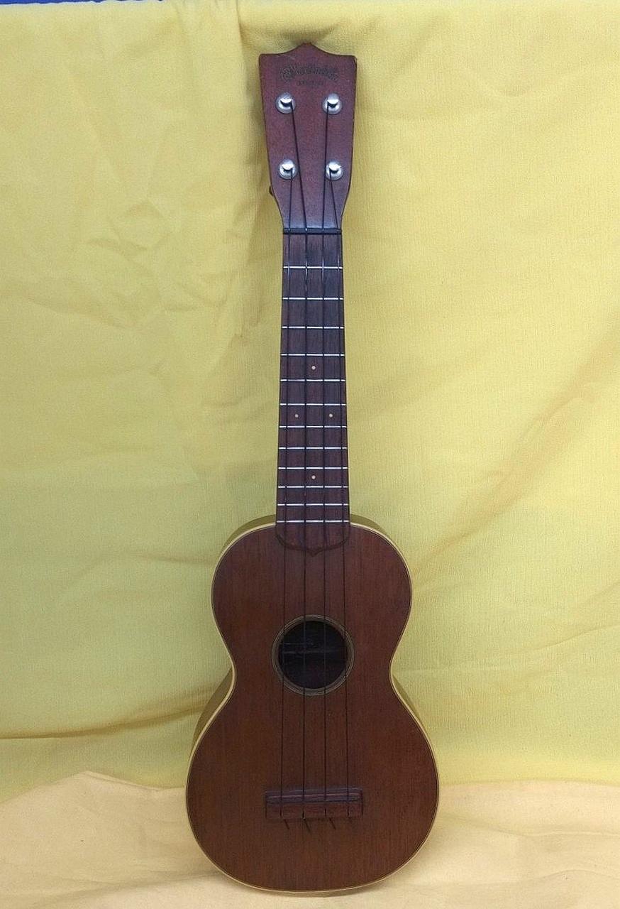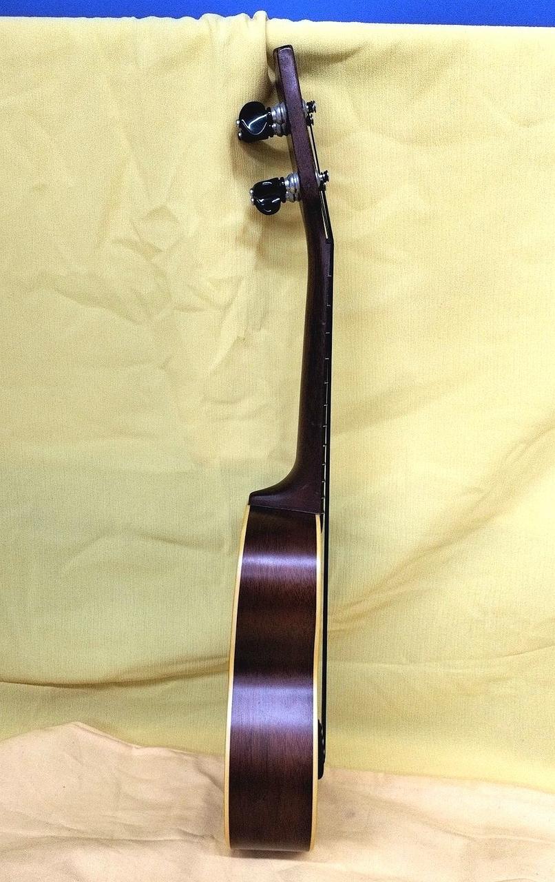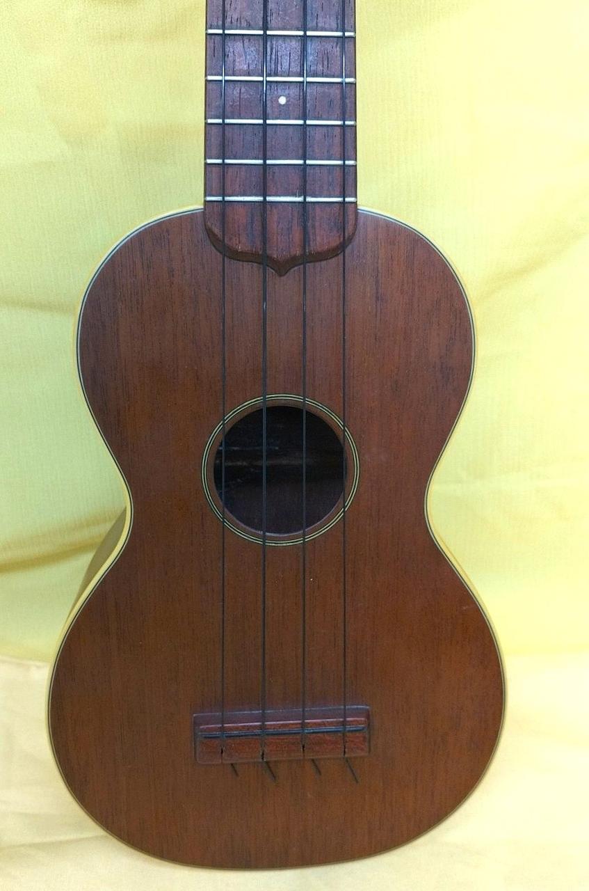 Martinのヴィンテージウクレレにはシリアル番号が入っておらず、正確な製造年の特定は出来ないものの、1962年から輸出のためにmade in USAの刻印が始まり、本楽器にはその刻印があるため1962年以降の物と思われます。おそらくボディはマホガニー指板はハカランダ。※※ボディ内に補修跡あります。