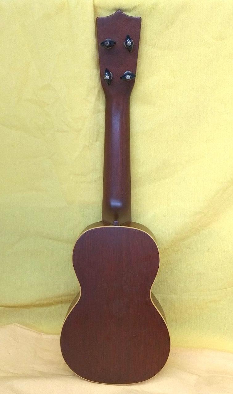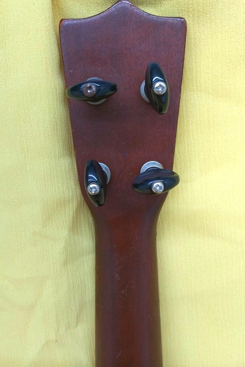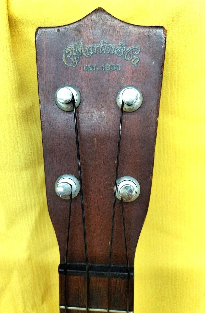Martinのヴィンテージウクレレにはシリアル番号が入っておらず、正確な製造年の特定は出来ないものの、1962年から輸出のためにmade in USAの刻印が始まり、本楽器にはその刻印がないため62年以前に作られたことは自明ですが、糸巻きやポジションマーク、ヘッド形状等の仕様から1940年代後期から1950年代に製作されたものと考えられます。 |
