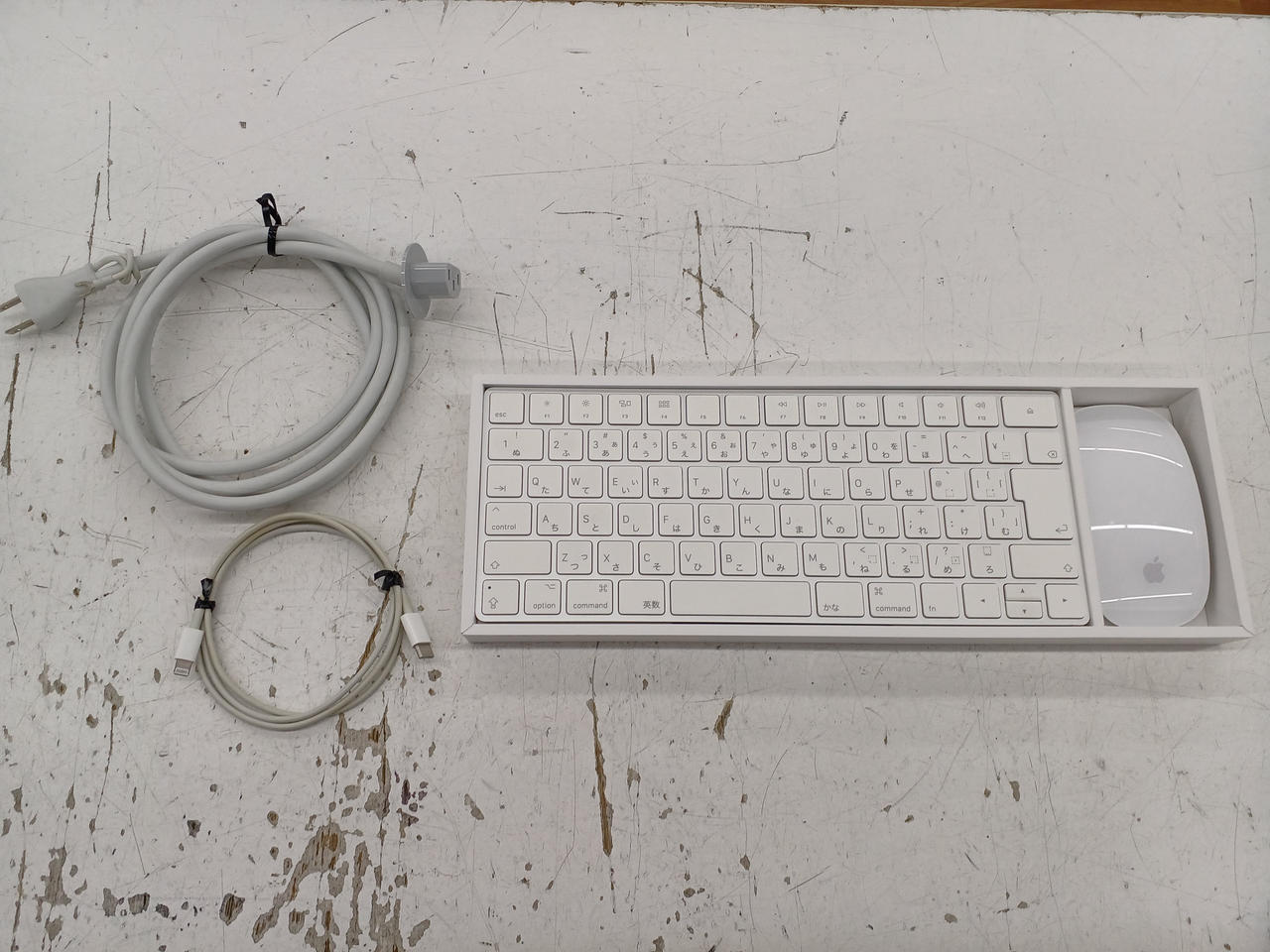 箱、ワイヤレスキーボード、ワイヤレスマウス、電源ケーブル、Lightningケーブル |