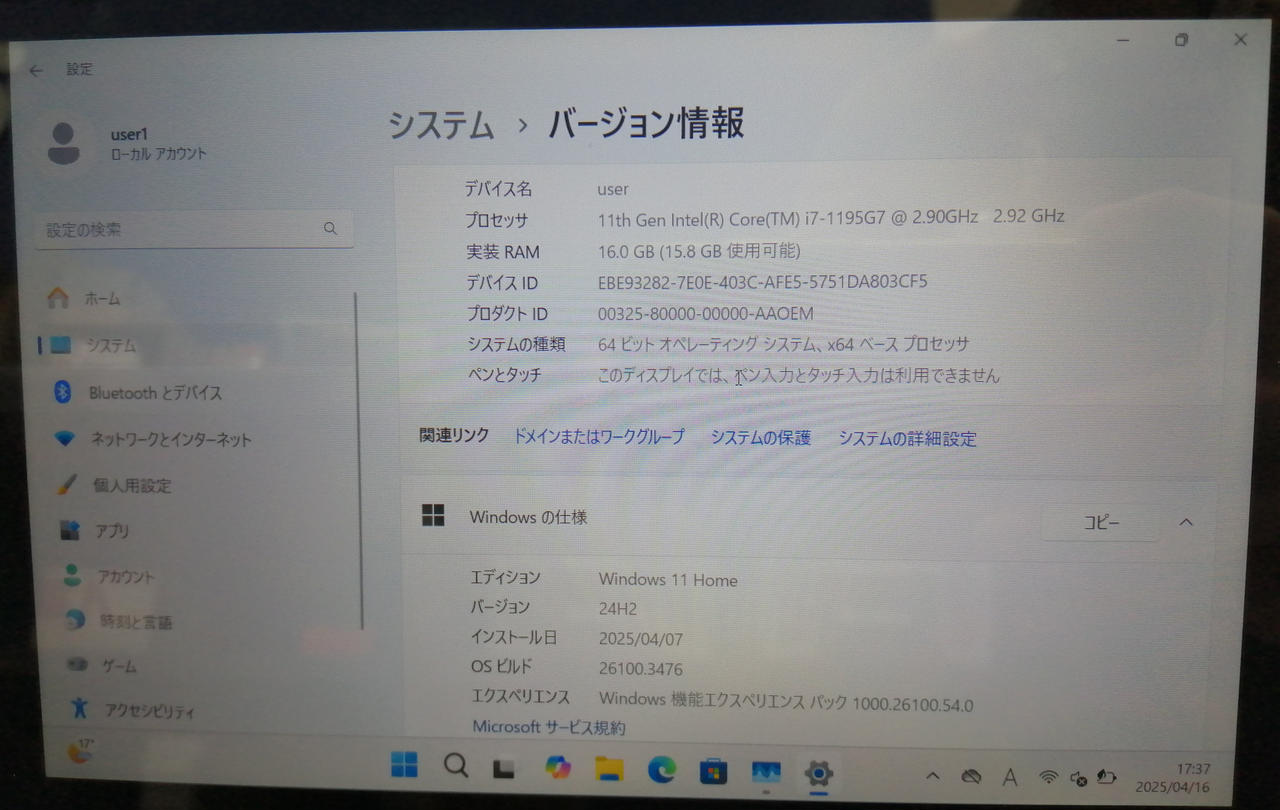 OS:Windows 11 Home(24H2) CPU::Intel Core i7-1195G7@2.90GHz(4コア/8スレッド) |
