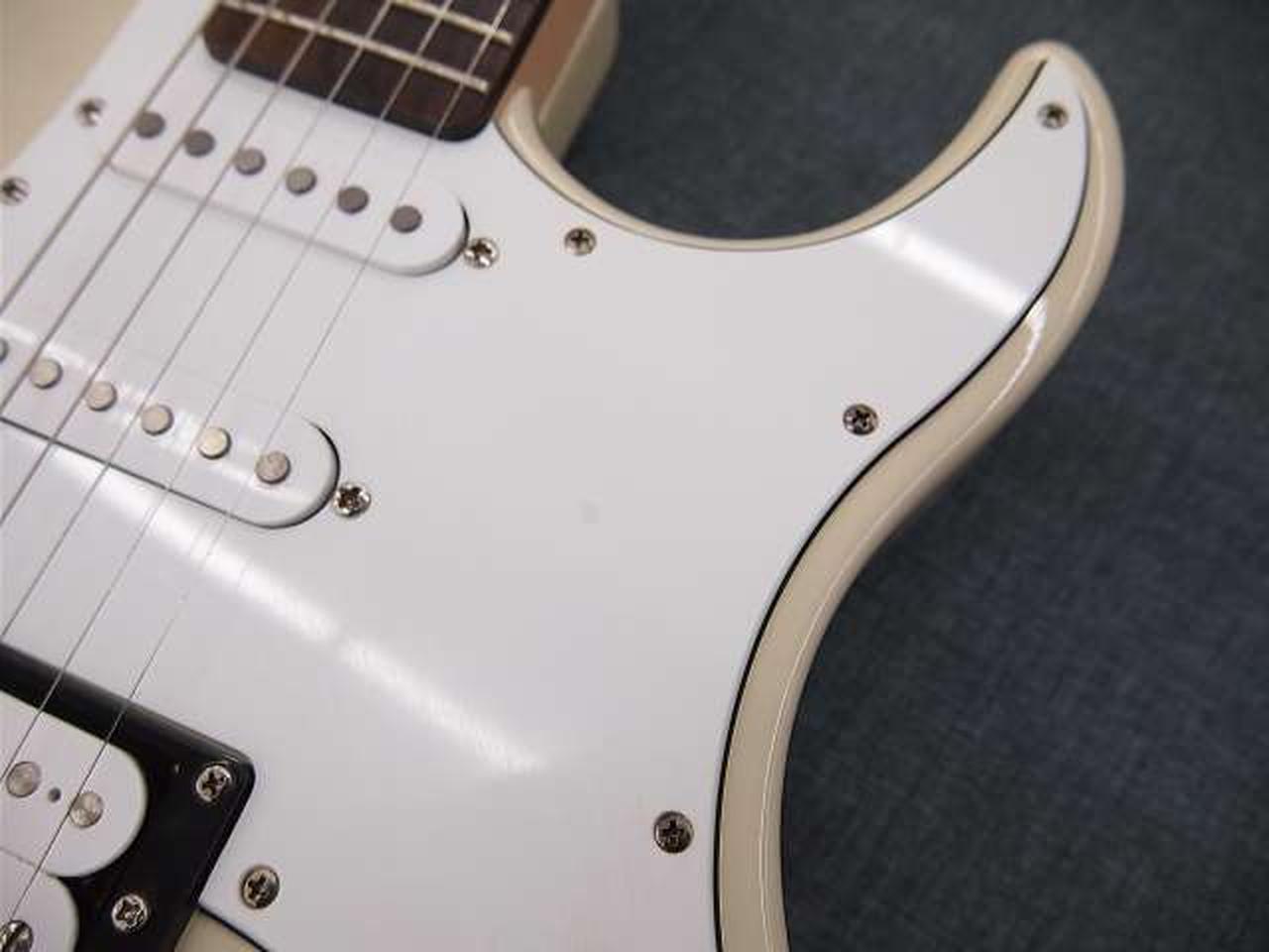 ピックガードにスクラッチ痕、ネジに多少の錆が見られます。ストラップピンがロック式に交換されています