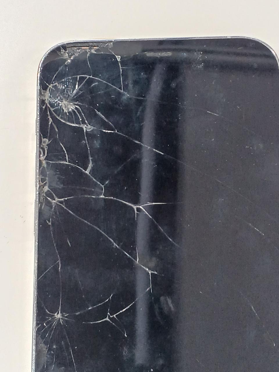 前面、背面ともに割れています。バッテリーチェック時82%。 |
