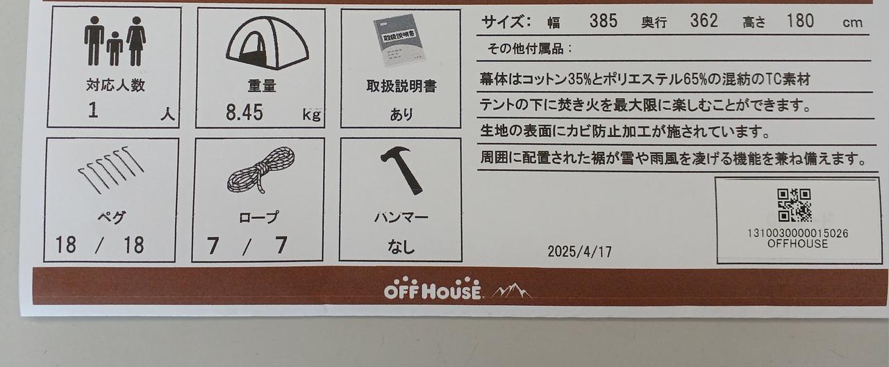 | 発送目安 | 1-2日後 |