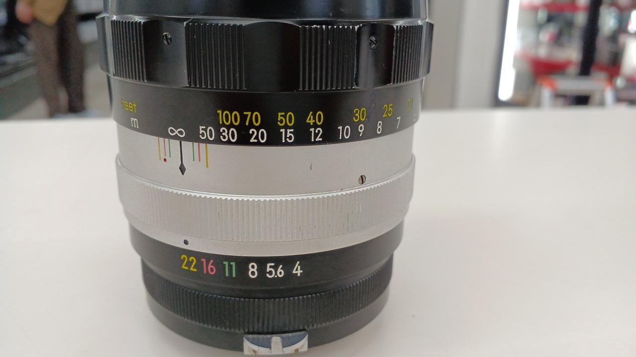 F用で最初の本格的望遠レンズといわれています。やや曇りあります。 |