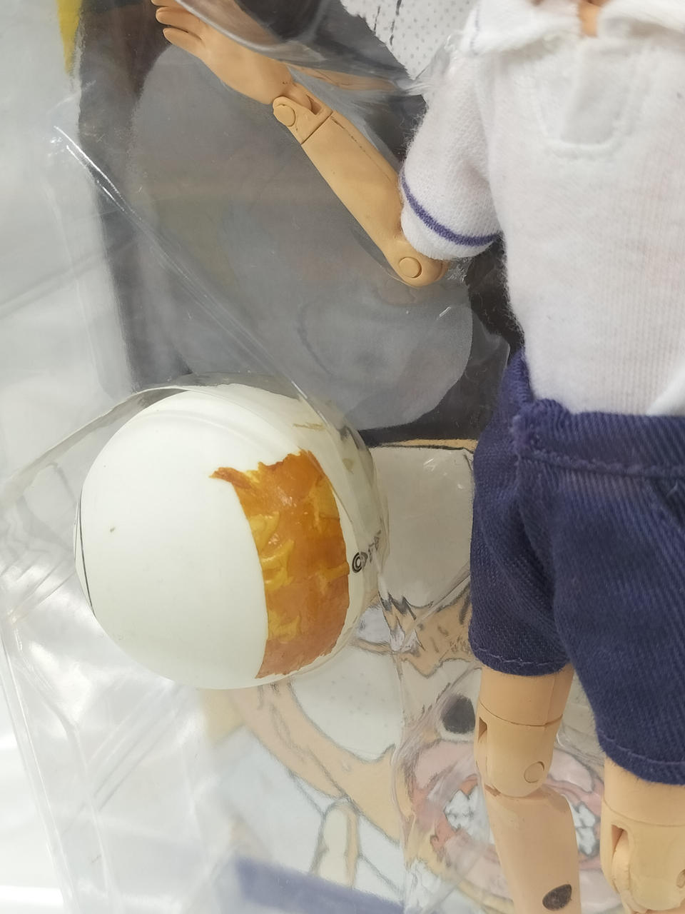 ピンポン玉に固定用?のテープが貼ってありそのテープが変色しています |