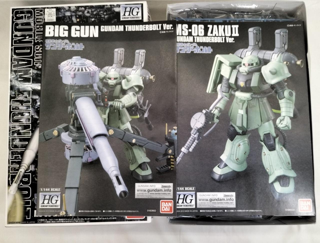 ビックガンと狙撃手ザクIIのセット。大型兵器を構えるポージングも可能。 |