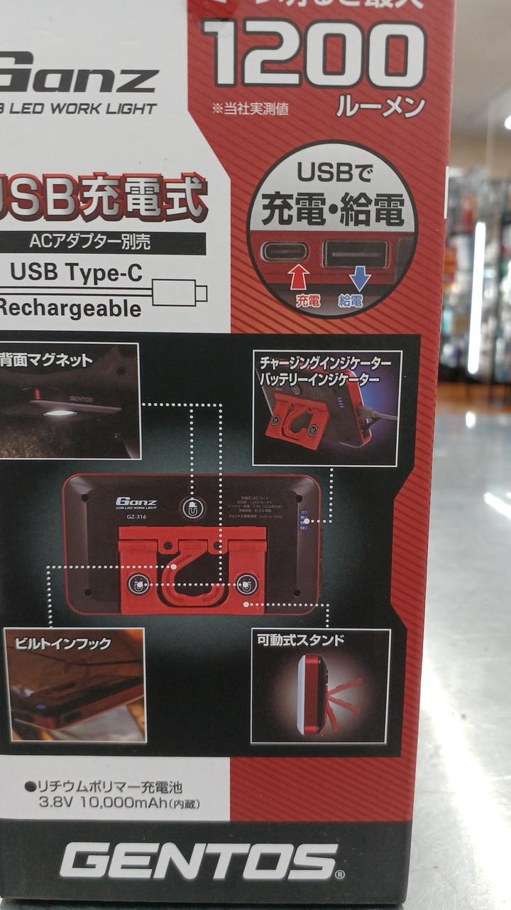 USB充電式 他のUSB機器へ給電可能(5V/1A) |