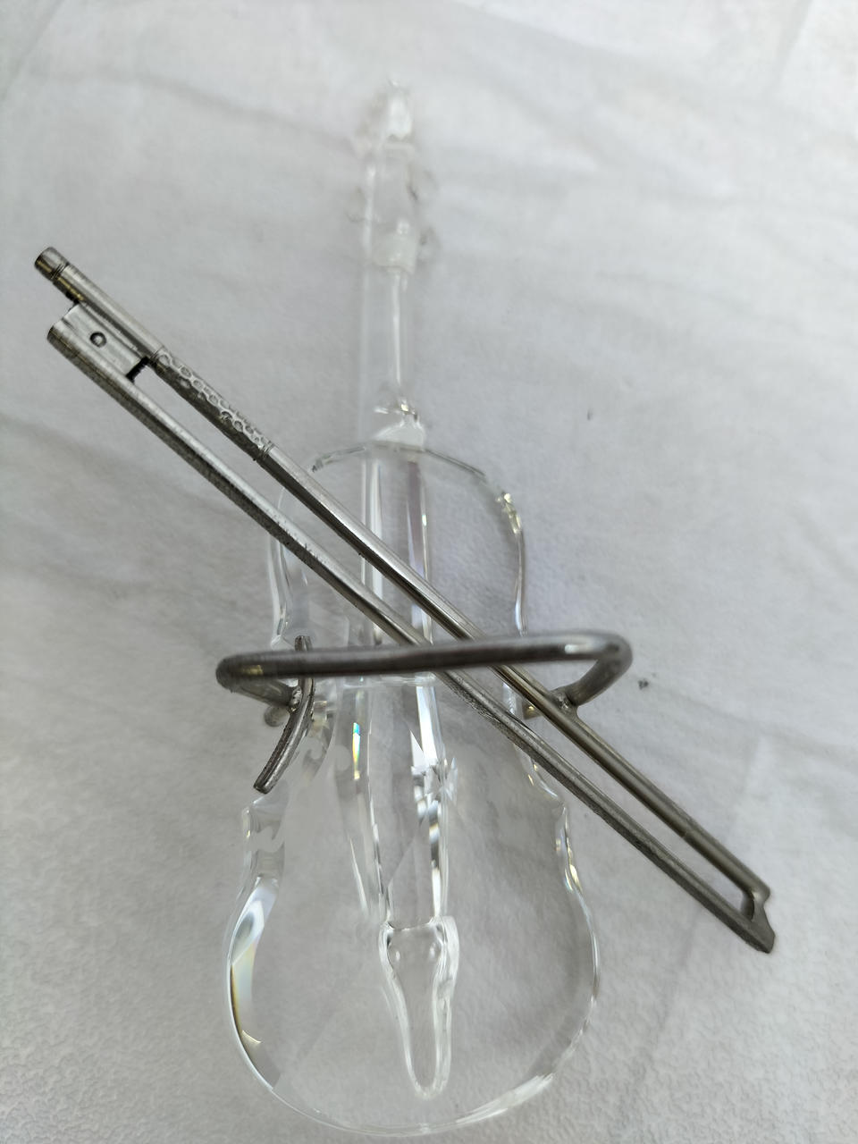 バイオリンはクリアクリスタル、ボウはロジウムコーディングを施しています。