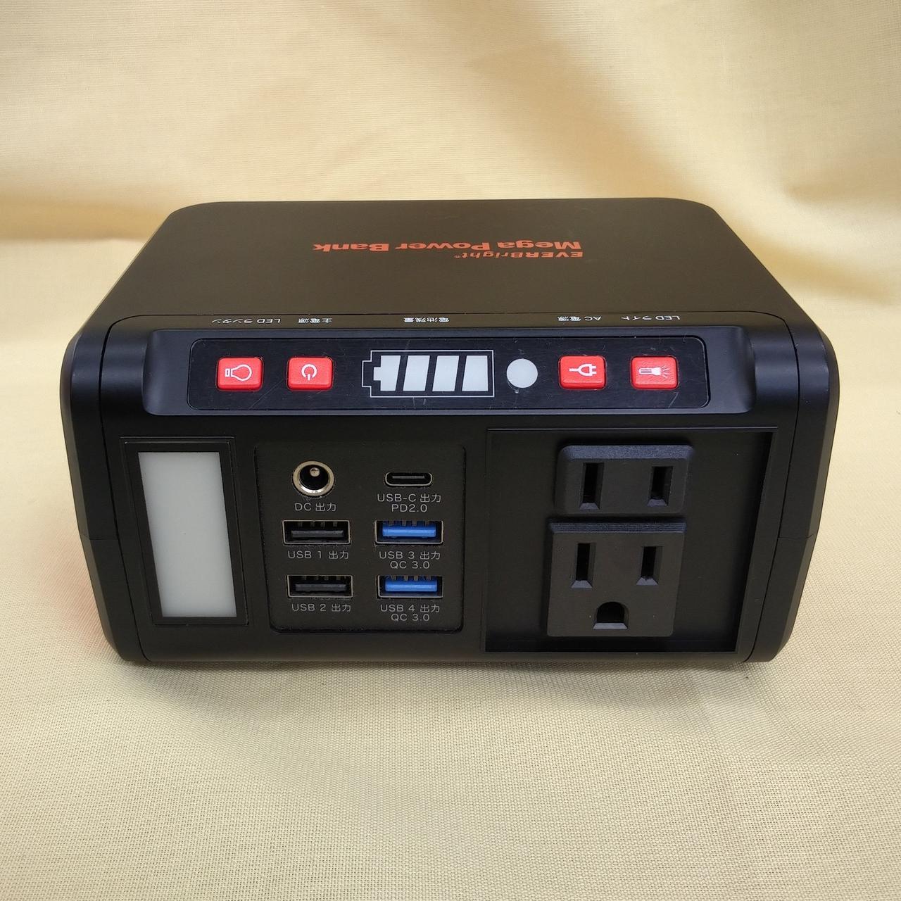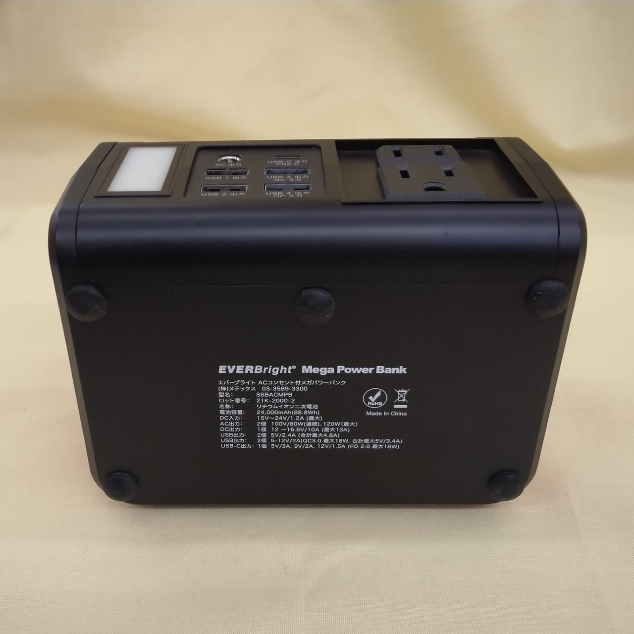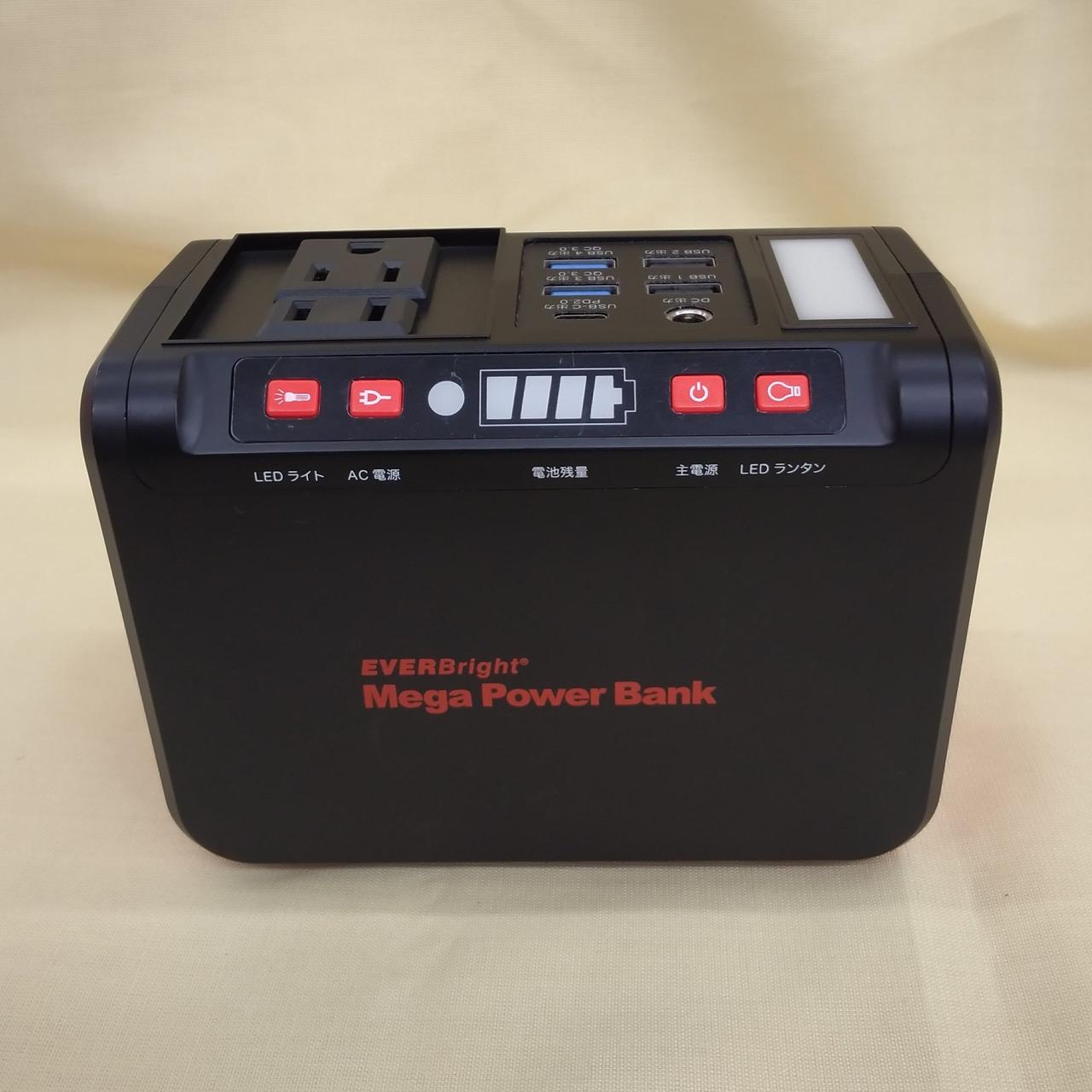 メガパワーバンクのACアダプターが欠品の為、現状ソーラー充電のみでの使用となります。