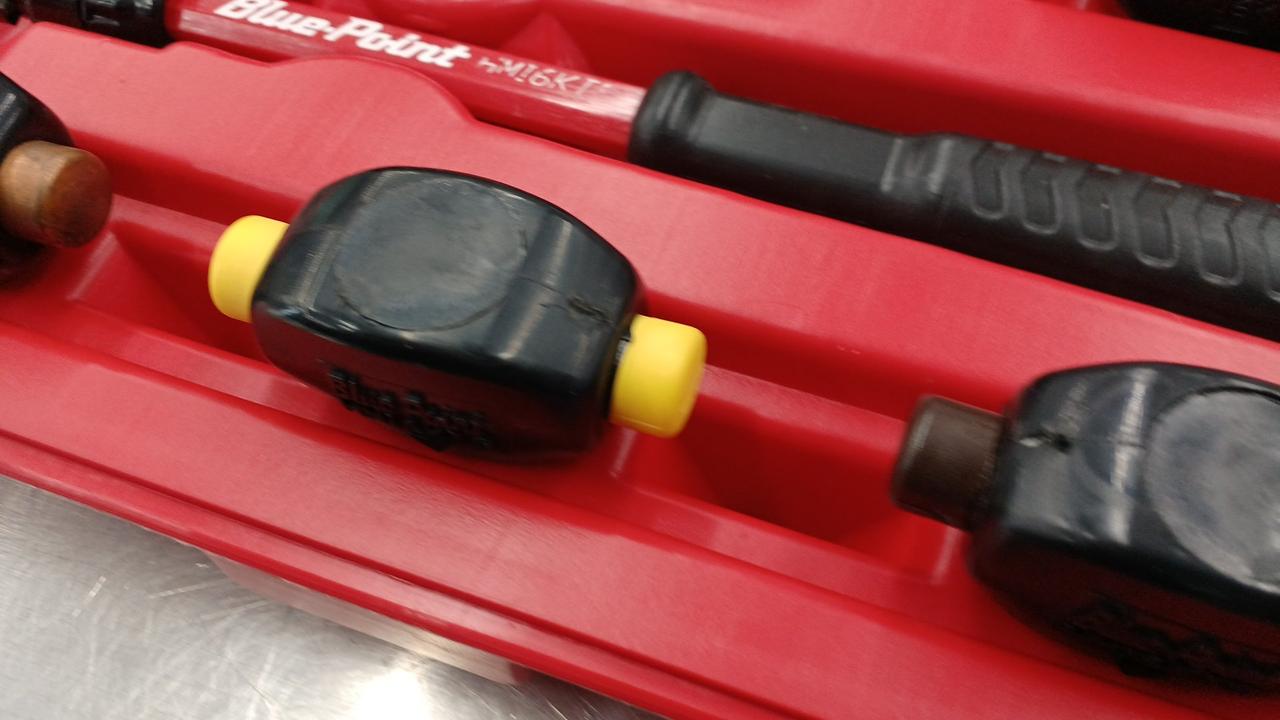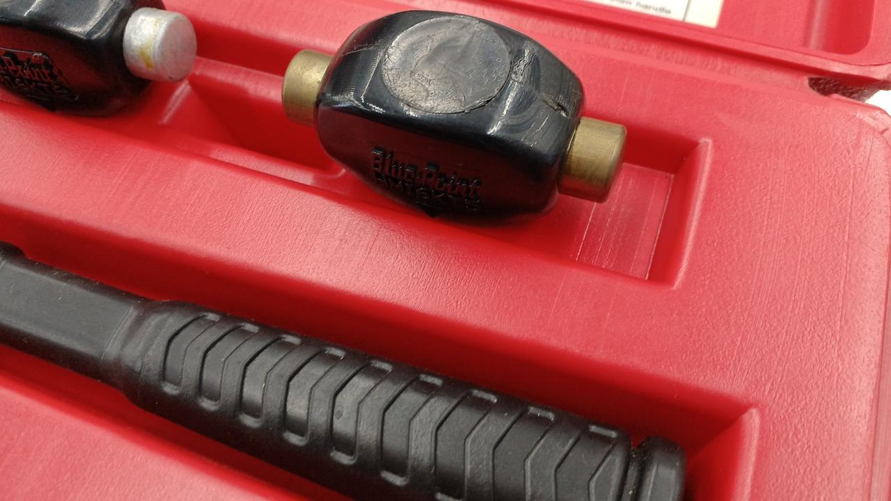 6種類のヘッド部分を入れ替えて様々な材質に合わせて打撃することができます。 |