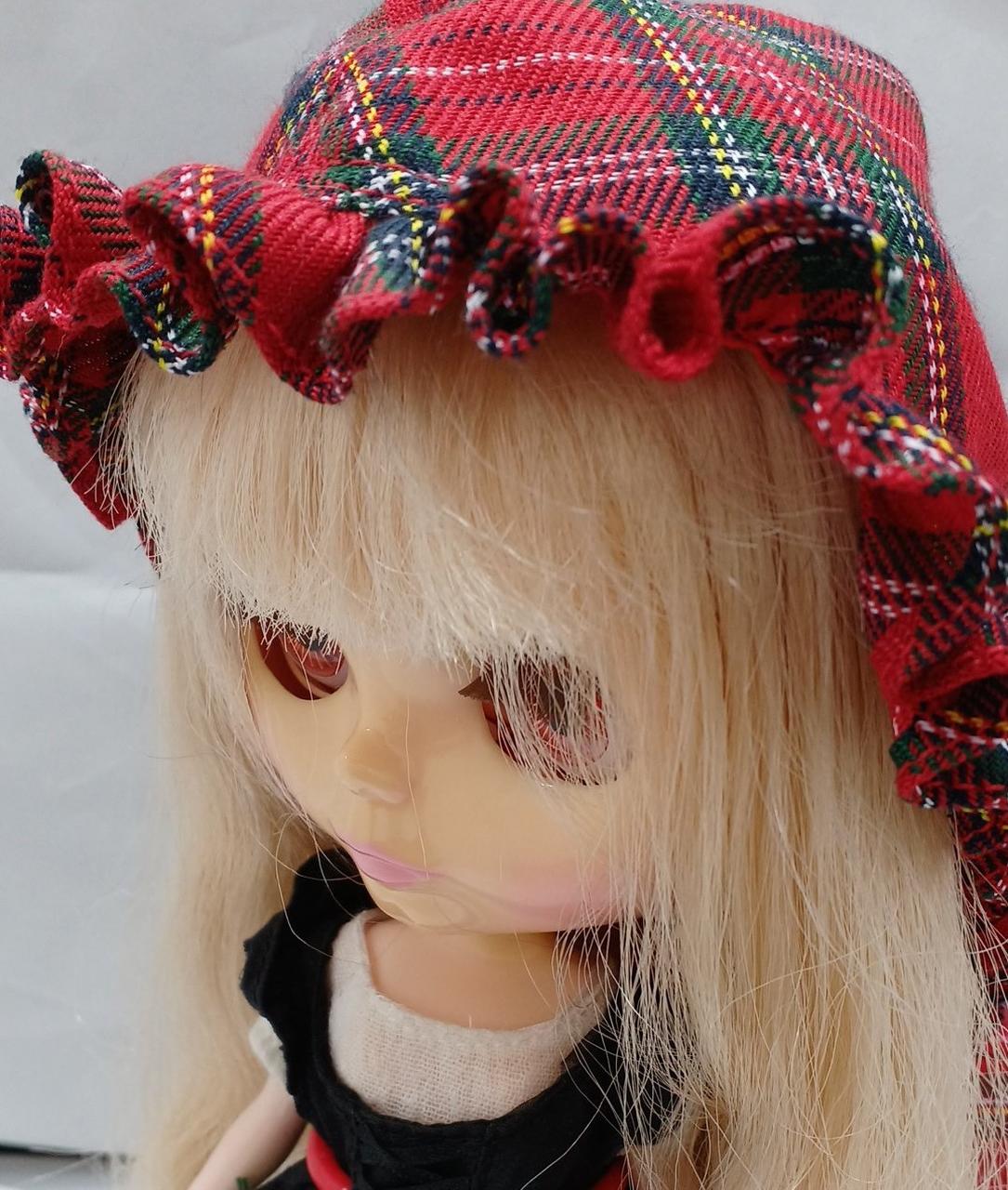 スタンド、タータンチェックの上着 |