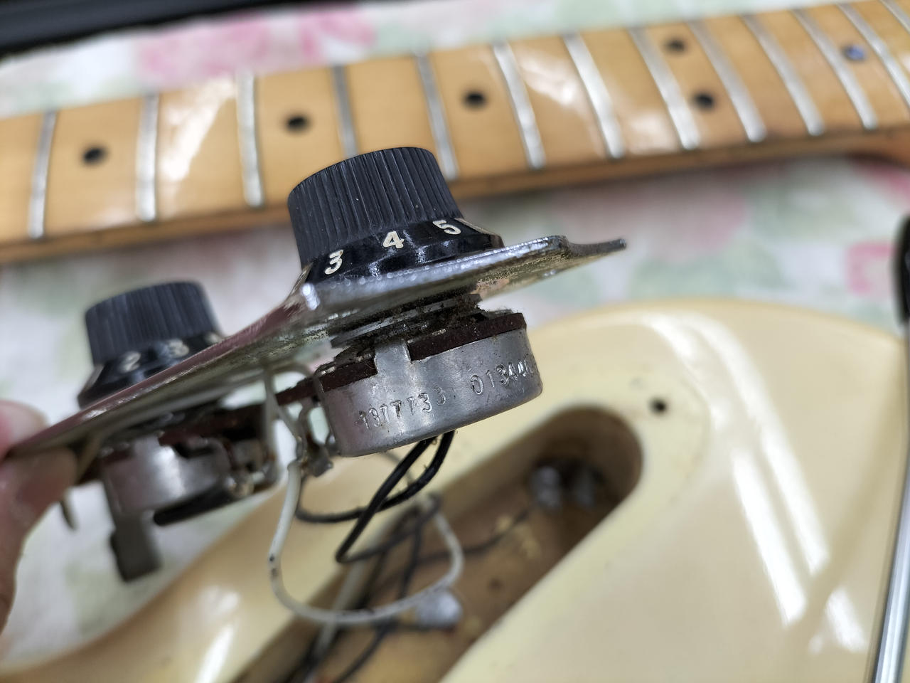 ※アーム固定イモネジ固着の為アーム外れず。おそらくナット、フレットは少なくとも交換されていると思われます。 |