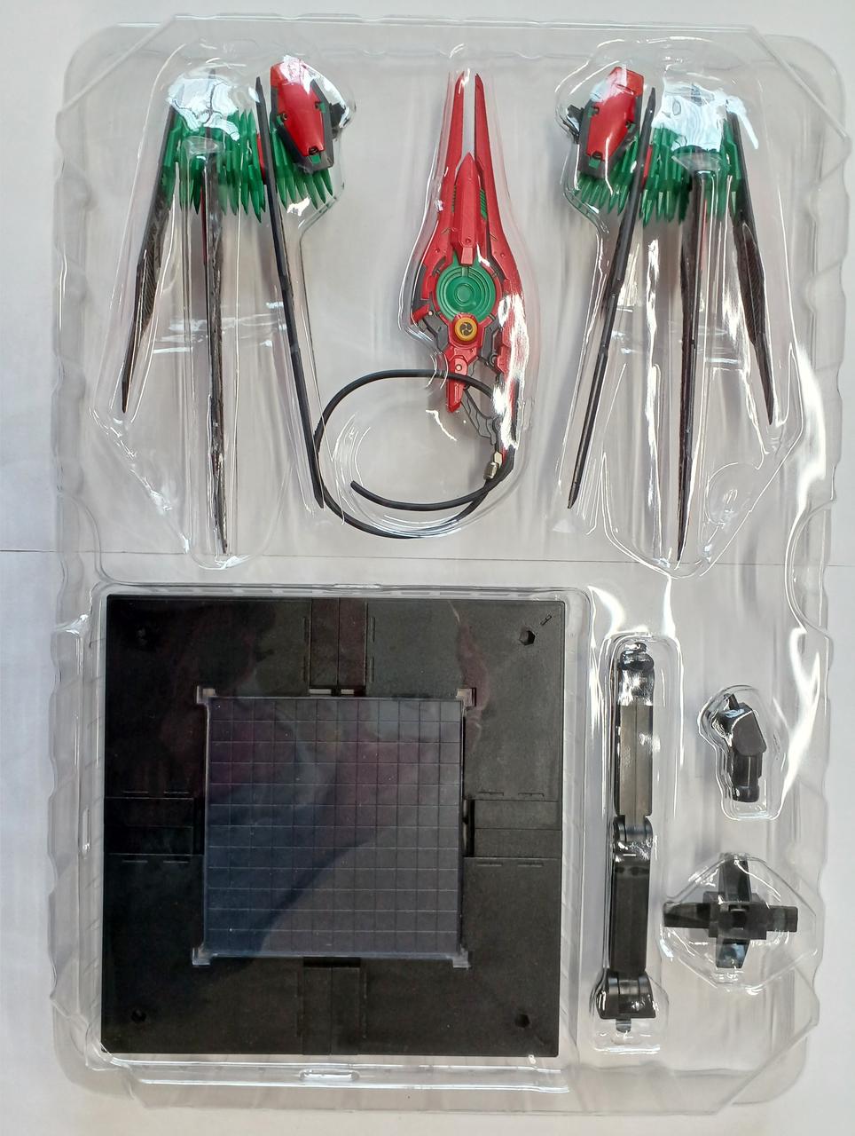 本体、テールスタビライザー用差替えパーツ、エグゼキュータ-、太刀×2、専用台座、布製マント |