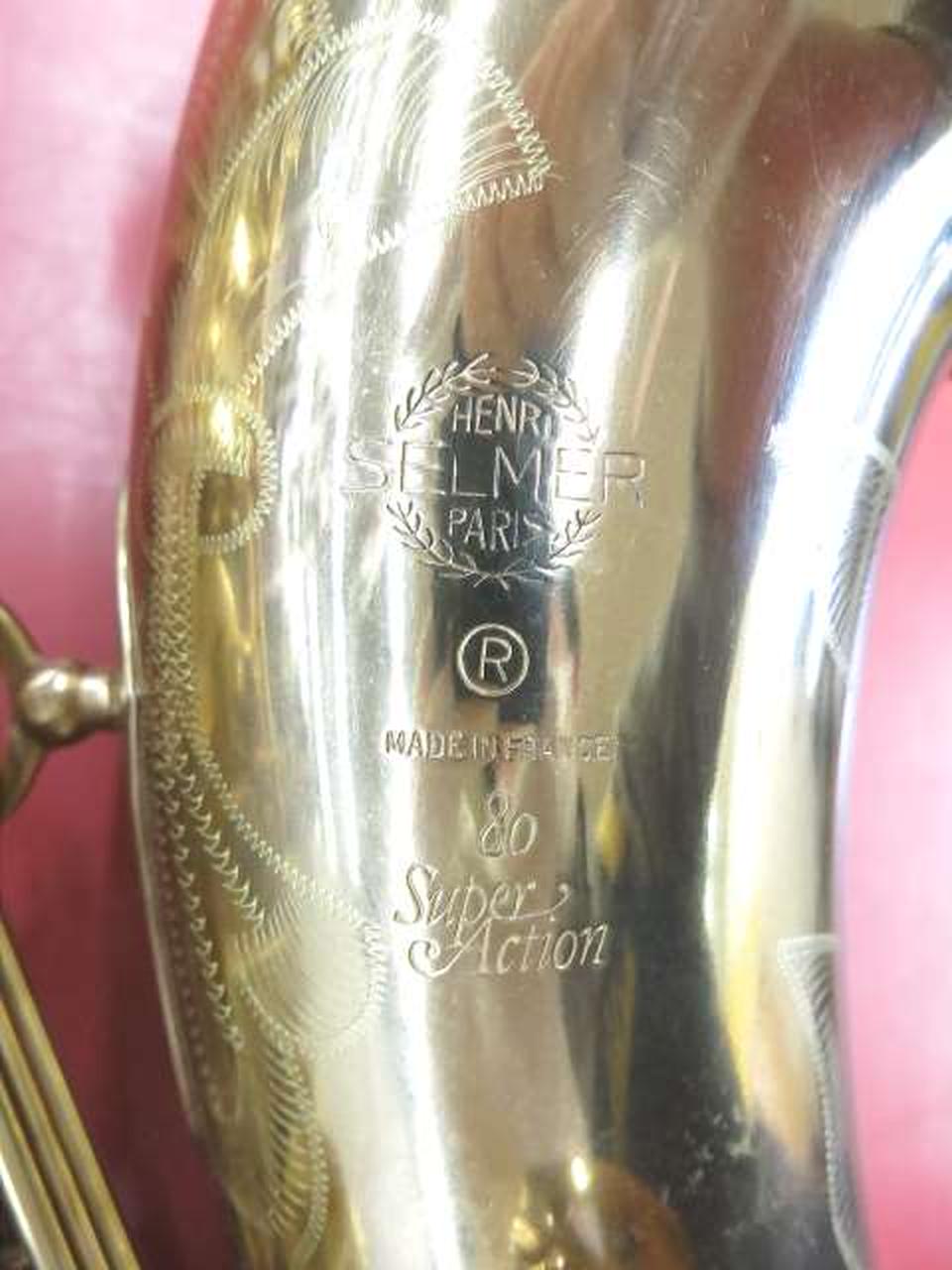 セルマーのSUPER ACTION 80。ロゴデザインなどジュビリー前・前期モデルと思われますが、サムレストがプラスチック製になっています。 |