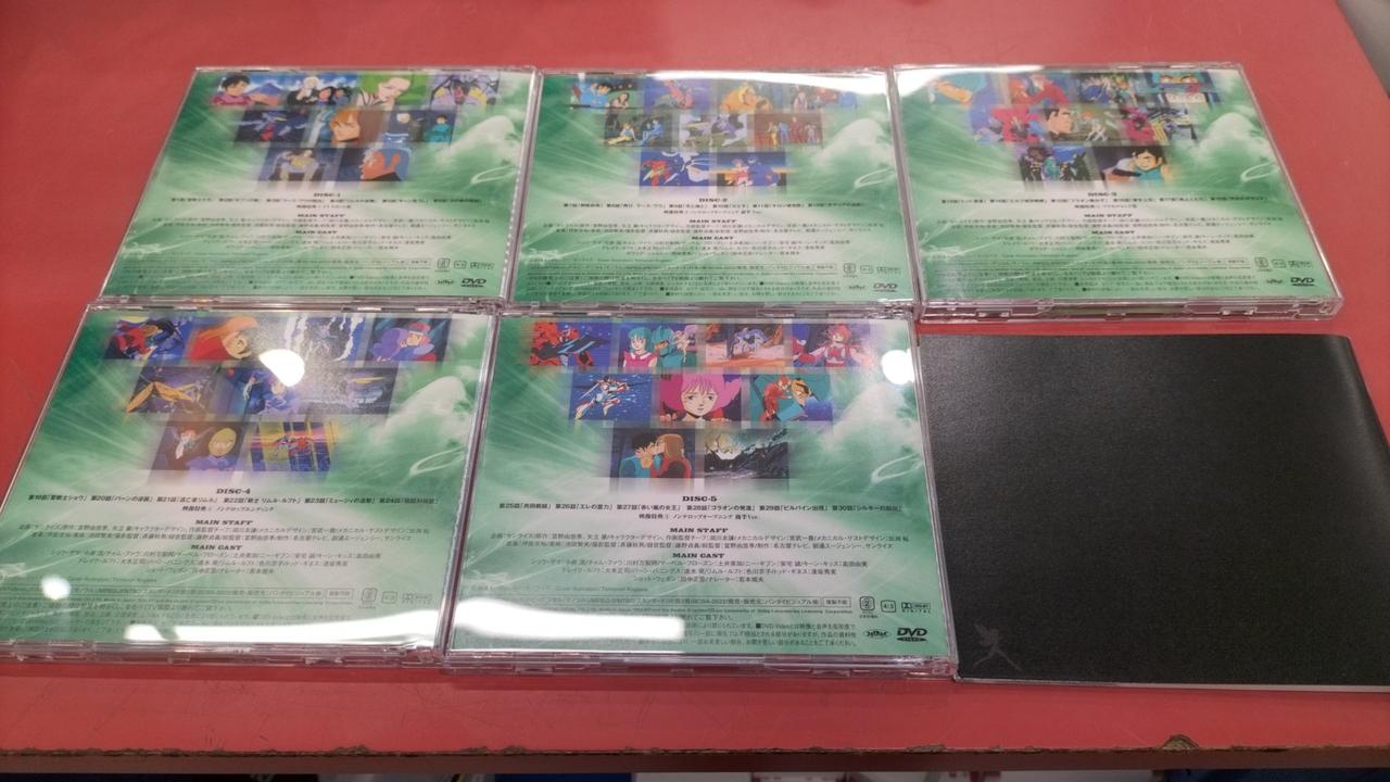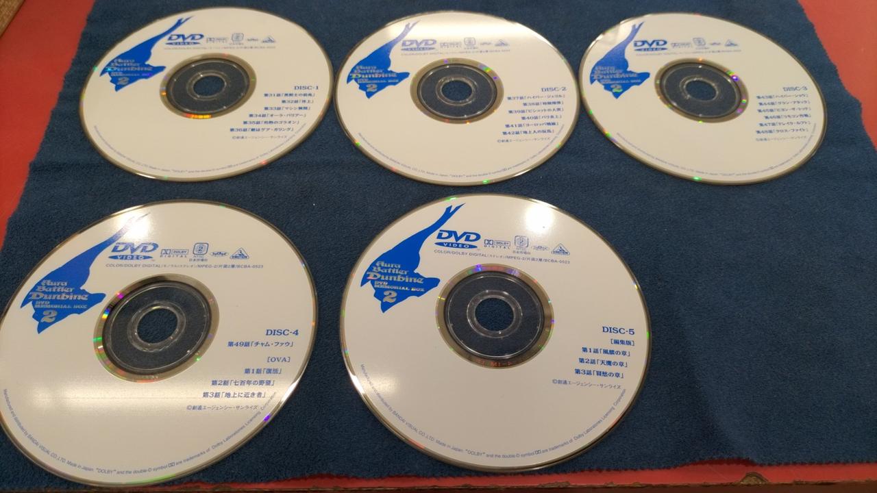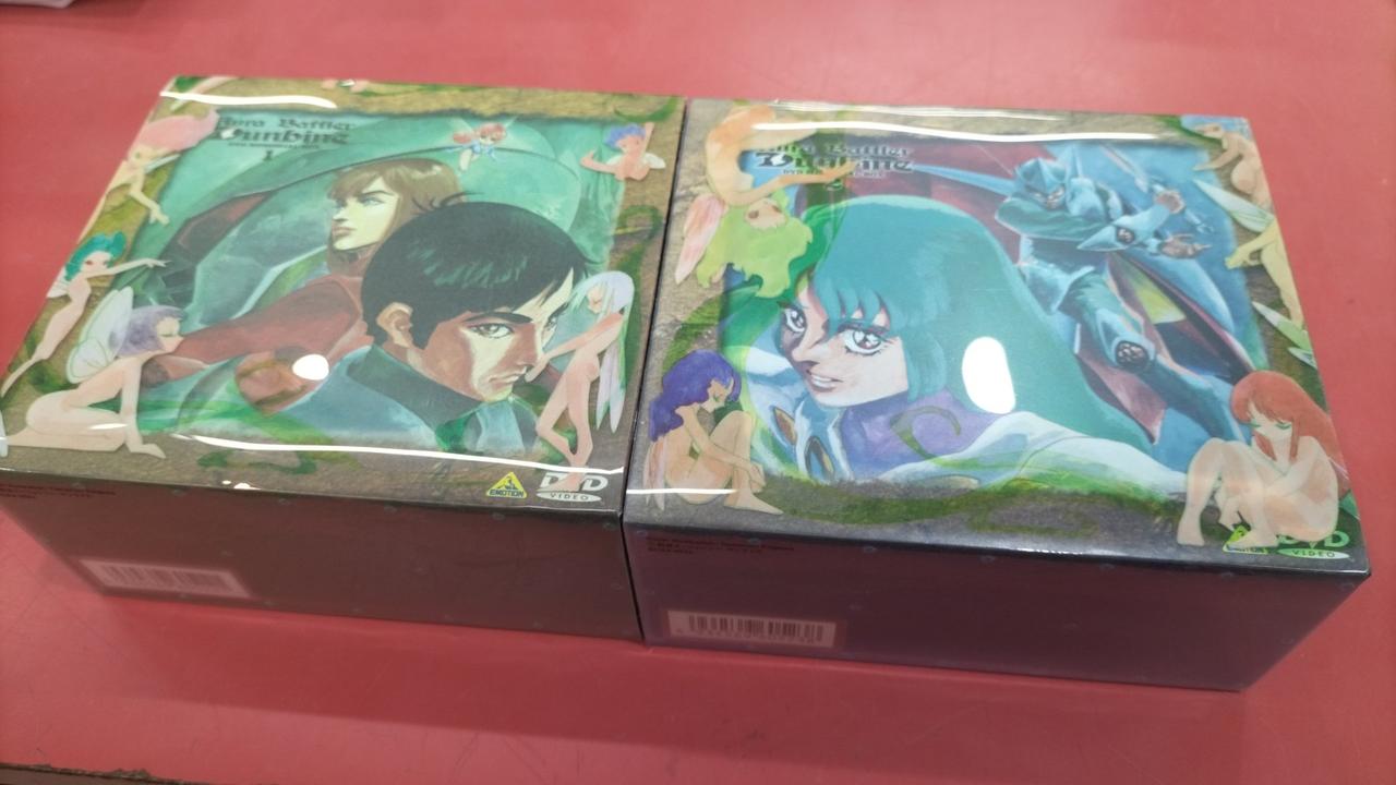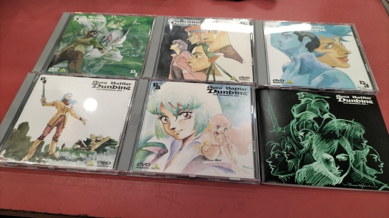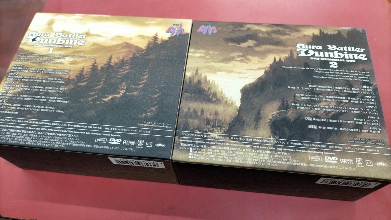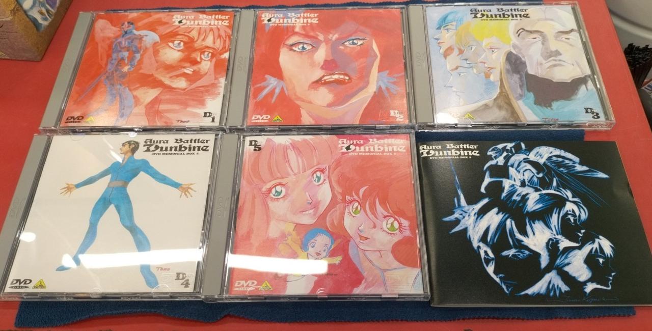 ダンバインDVDメモリアルボックスの1と2セットです。外箱背部分日焼けあり、ボックス2のディスク1にキズあります。 |