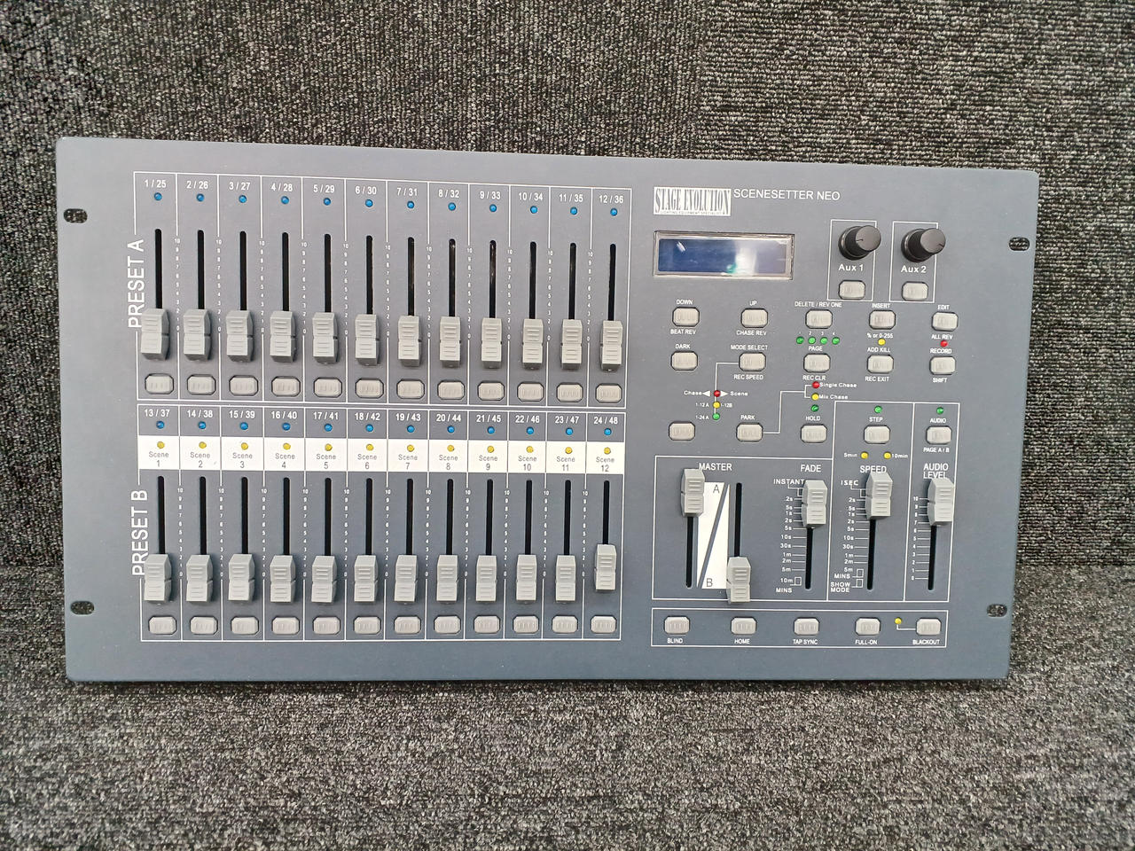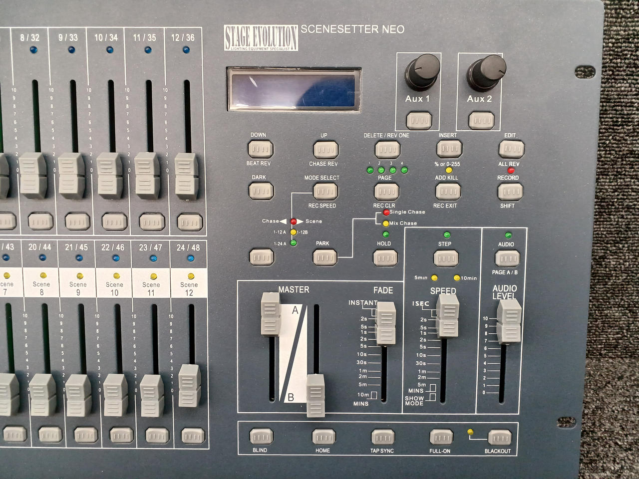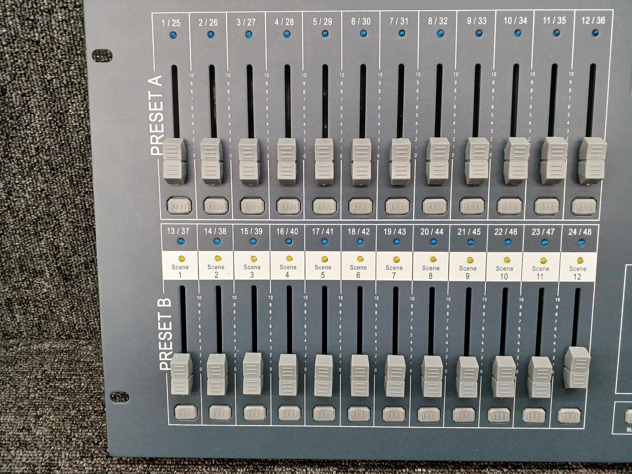 48チャンネルのDMXコントローラー 24本のフェーダーでコントロールします |