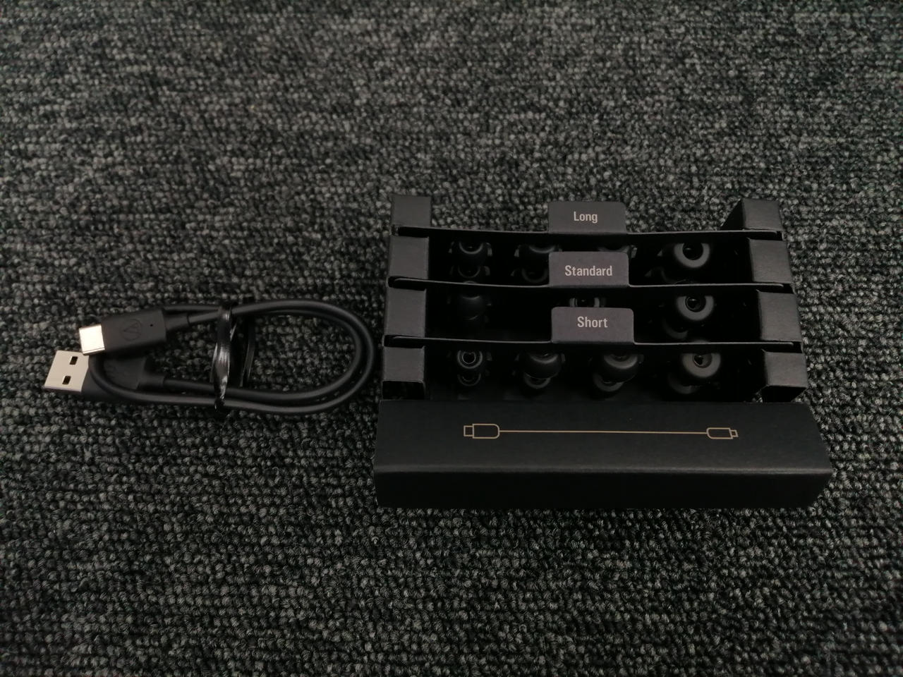 化粧箱、取扱説明書、接続ケーブル、付属部品付きです。 |