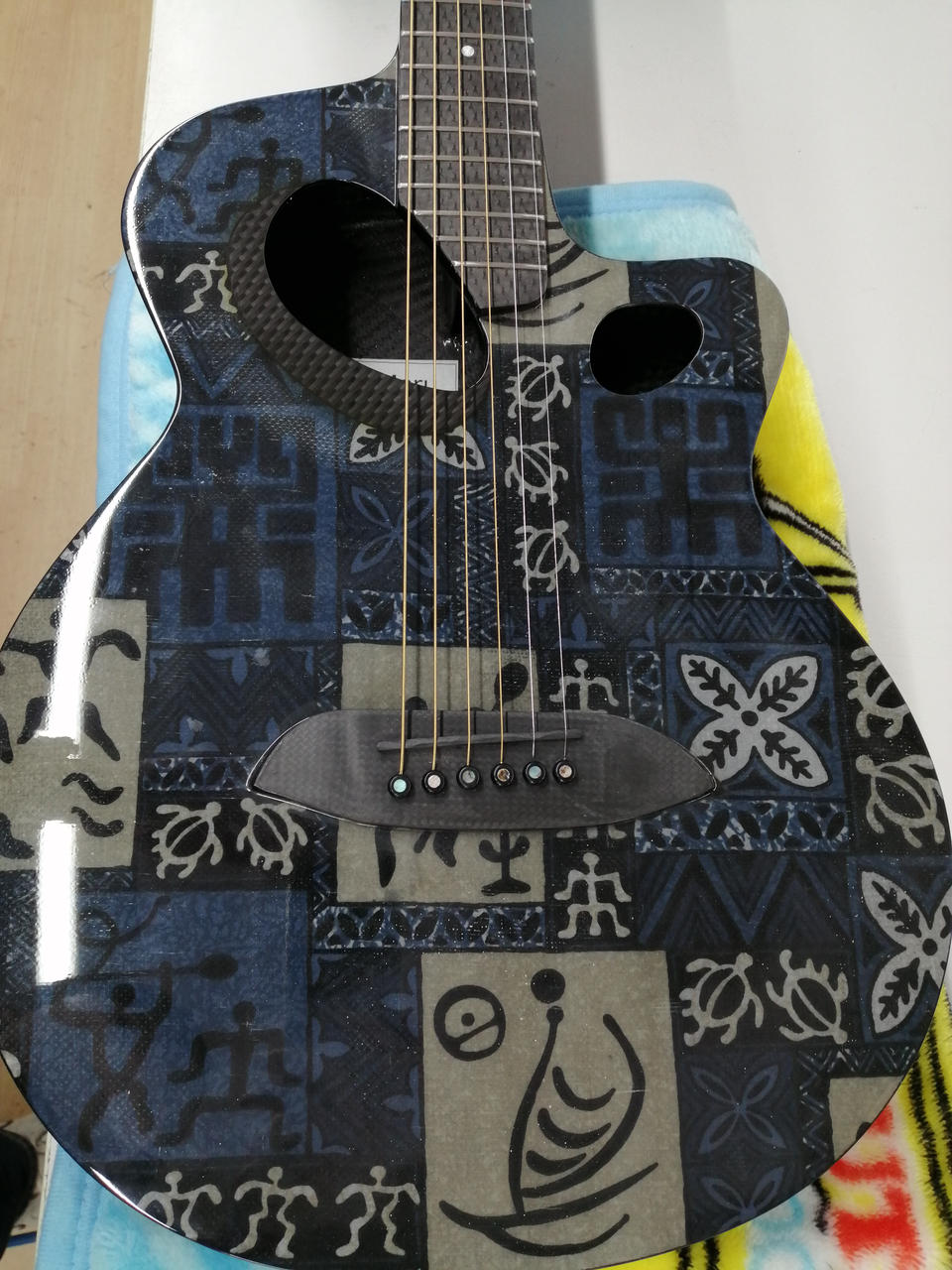 環境変化を受けにくいカーボンで製造されている為湿度、気温の変化に大変強いギター |