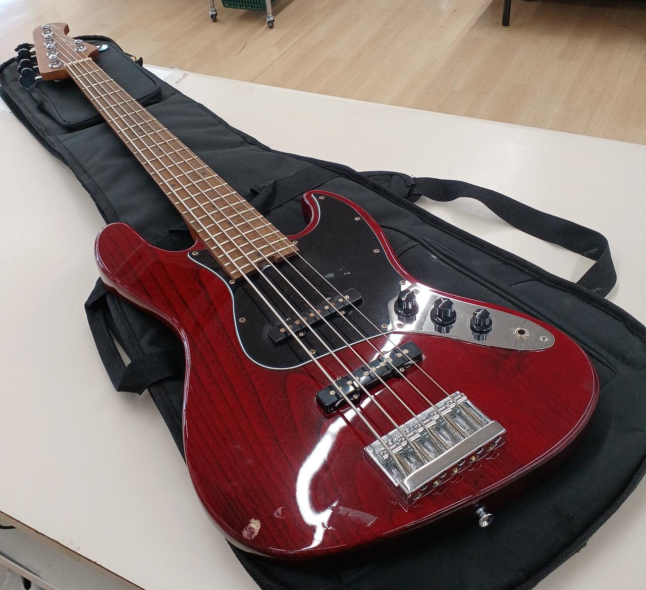ネック&指板にローステッド・フレイム・メイプルを採用した5弦仕様のベース |