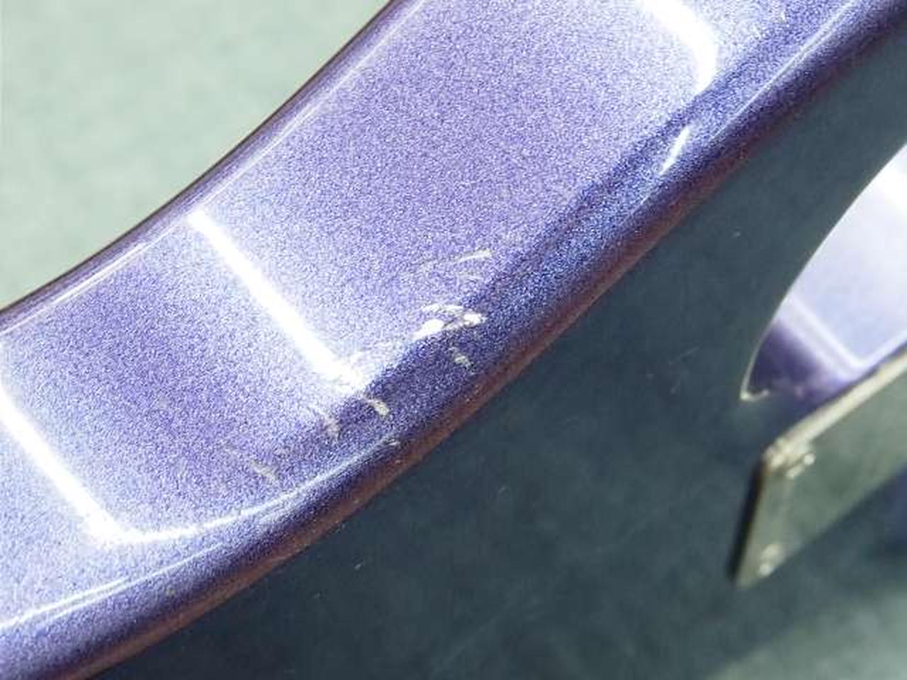 商品画像に比較して実物は紫が強く出ています。塗装が薄く、ライトエイジド仕様のため所々チップやウェザーチェックが見られます |
