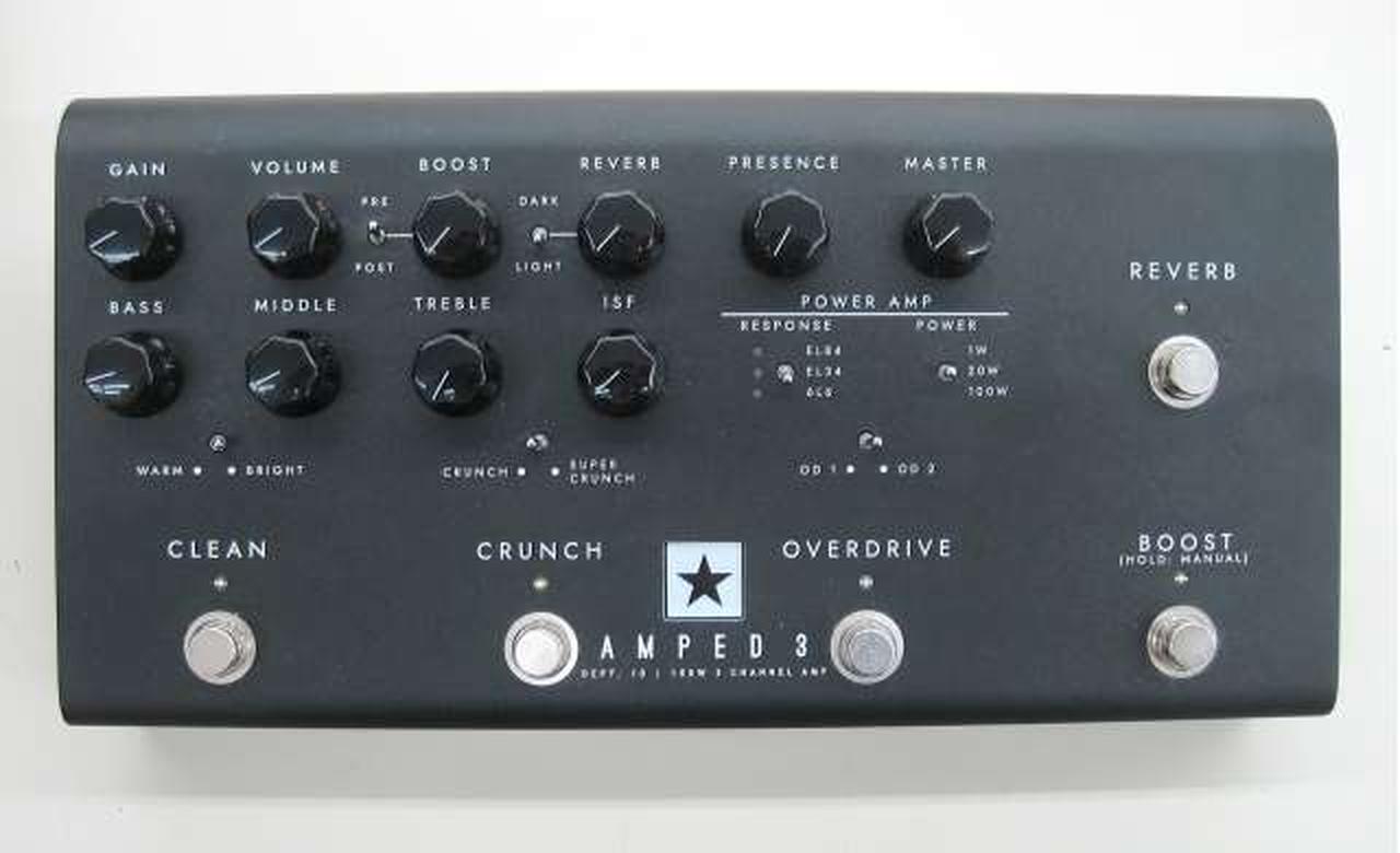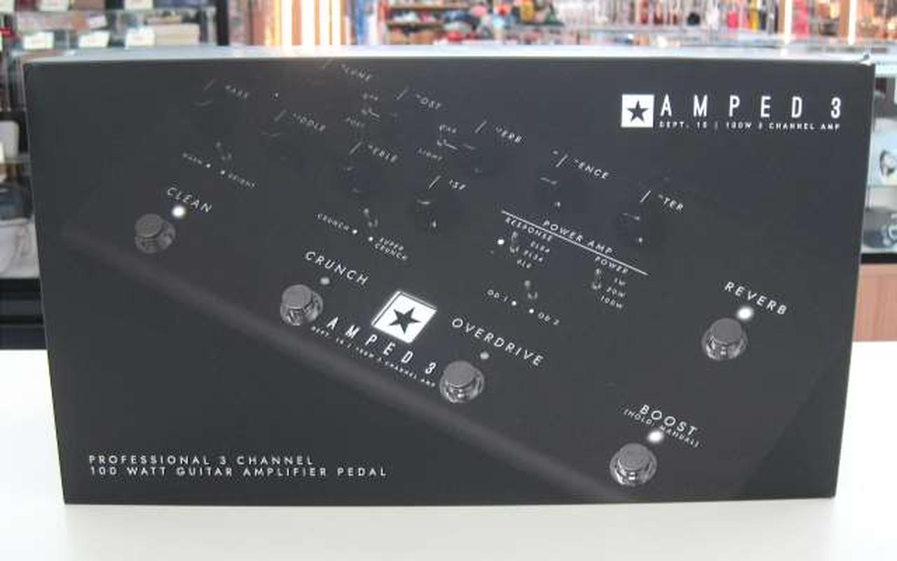 AMPED 3 は、6 つのボイシングと3 つのプログラマブル・チャンネル、そしてリバーブを備えた100W のハイゲインのペダル型アンプです。 |