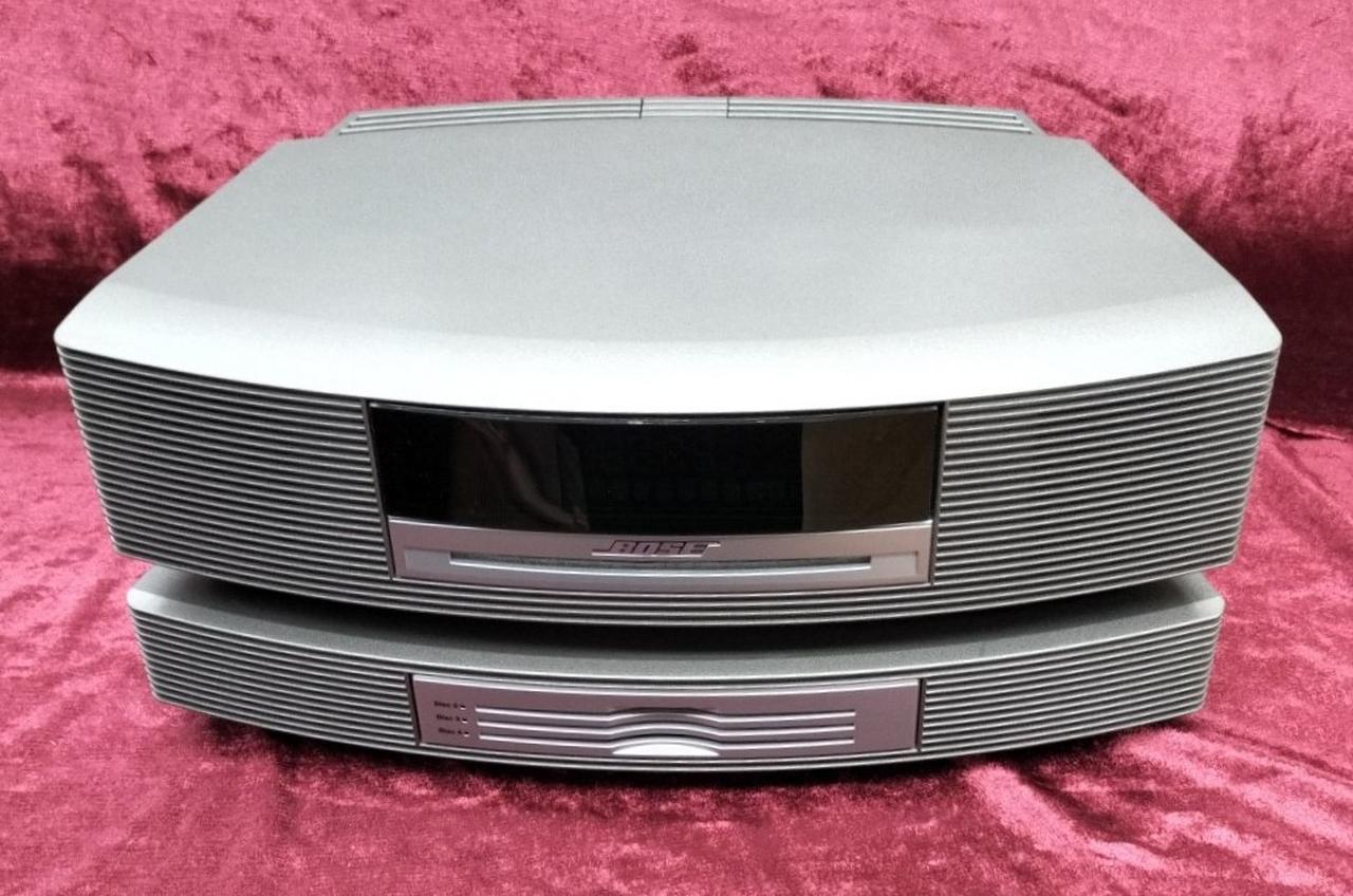 BOSEの小型CD・AM/FMプレーヤー「WAVE MUSIC SYSTEM」の初代モデル Wave music systemとGlass TableとMulti-CD Chengerのセットです。 |