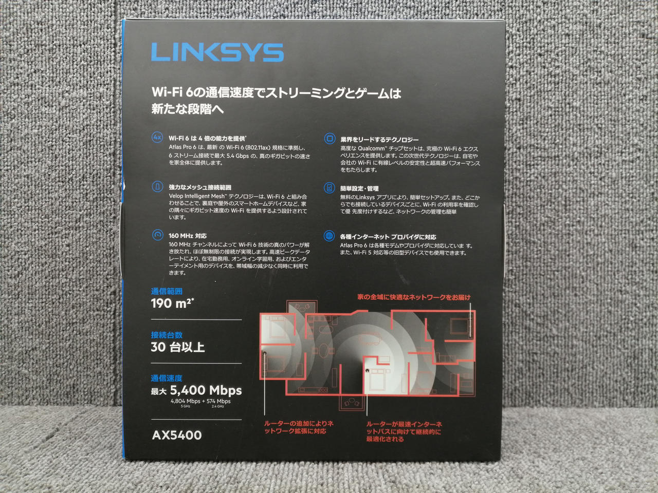 2.4GHz帯で574Mbps、5GHz帯で4804Mbpsの通信速度を実現した高速回線ゲーミングルーター |