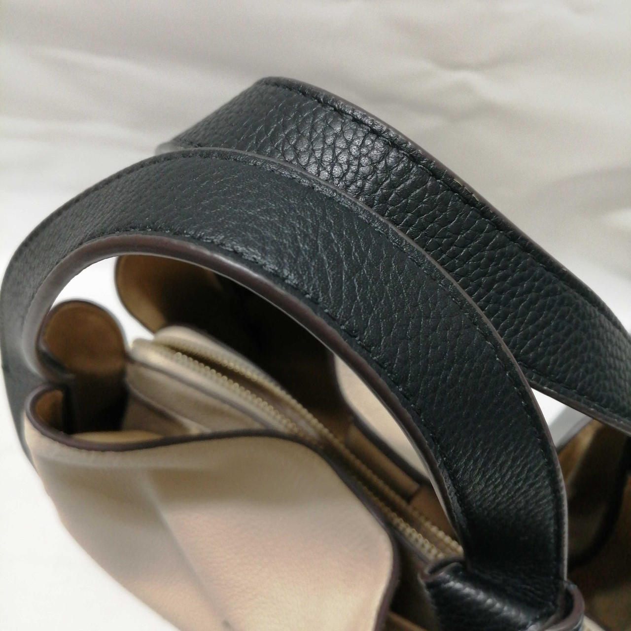 ・ペブルレザーにスムースレザートリム |