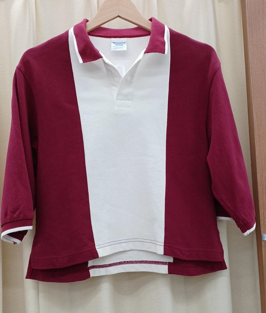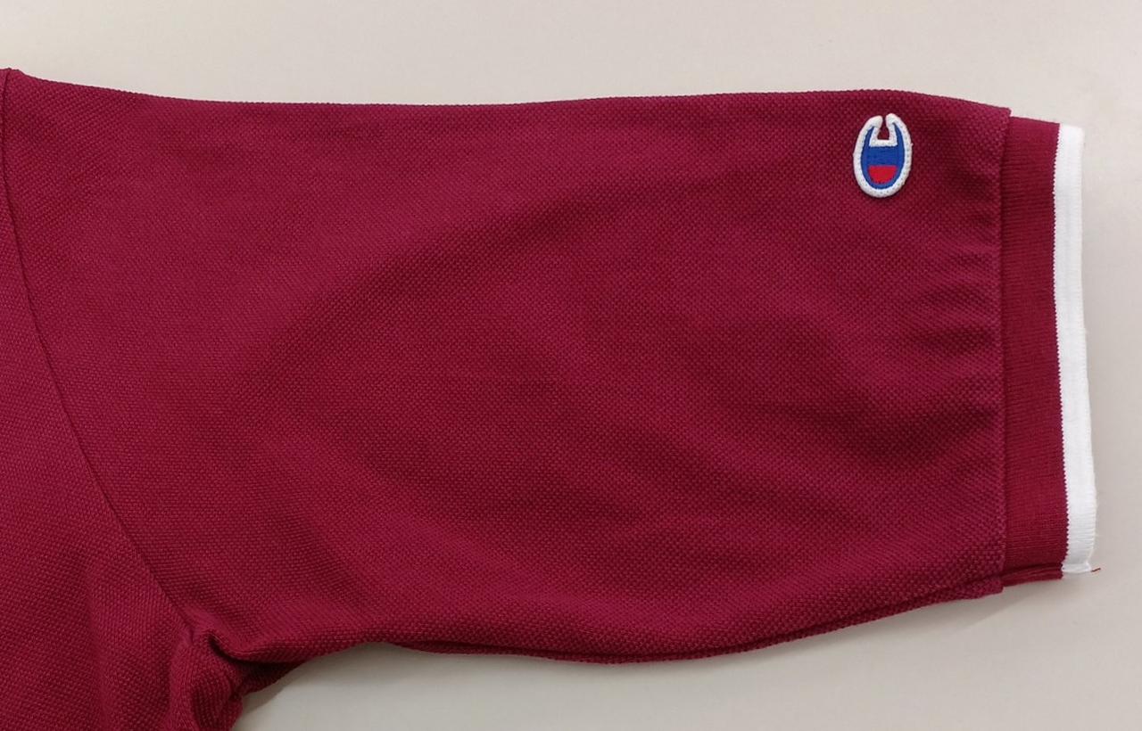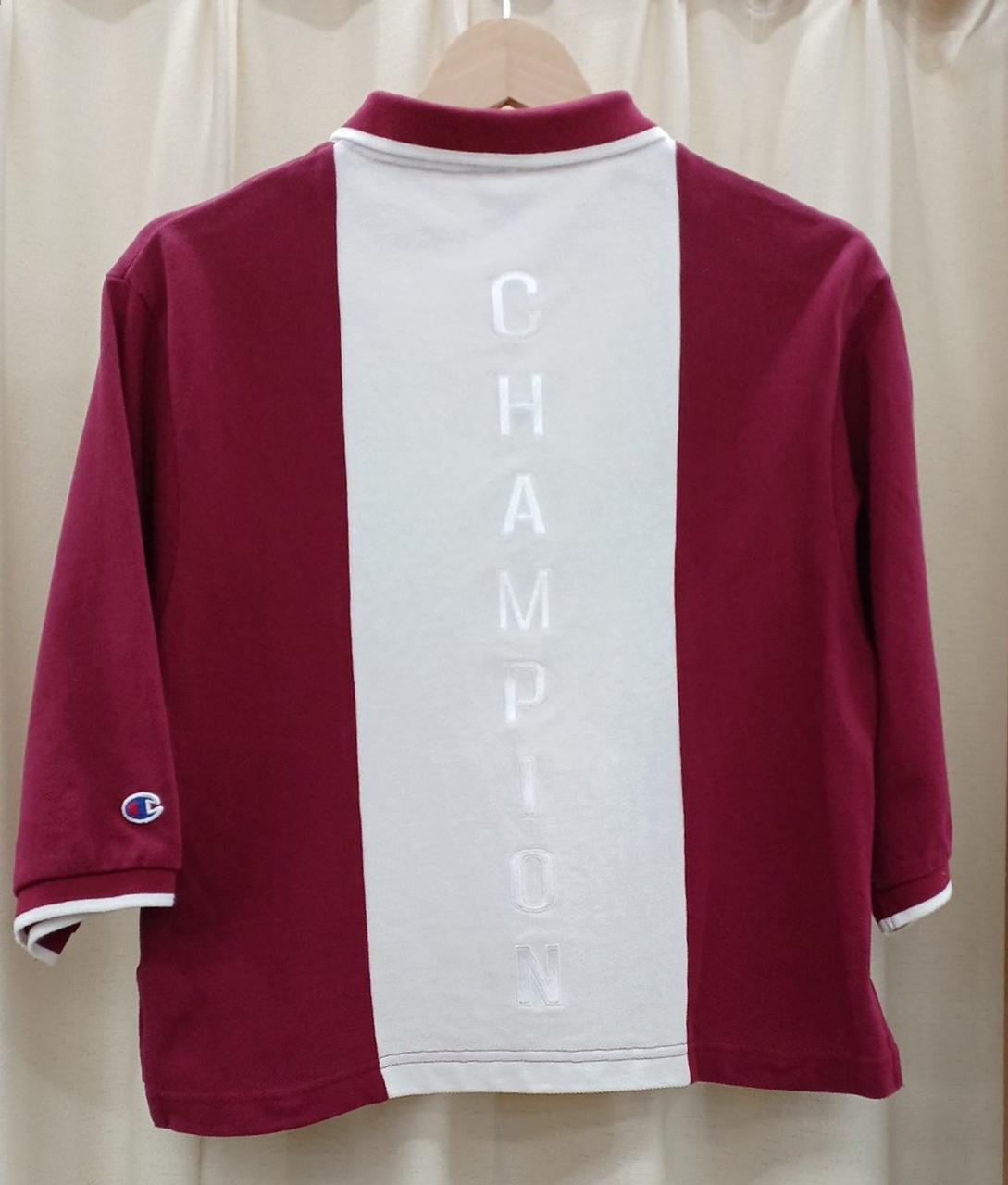 CHAMPIONのポロシャツです。バックにCHAMPIONのロゴがあってとても可愛いです。また袖が七分になっていて着丈も短めで流行りのデザインになっています。目立つ汚れなどなくまだまだご着用頂けるお品です。 |
