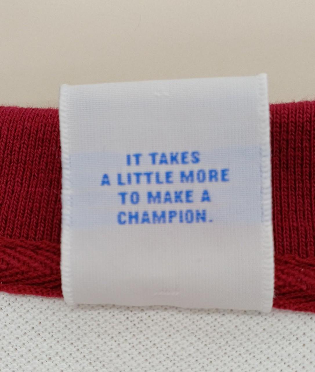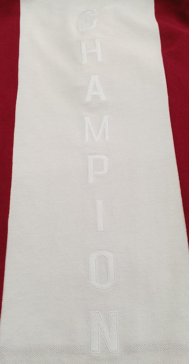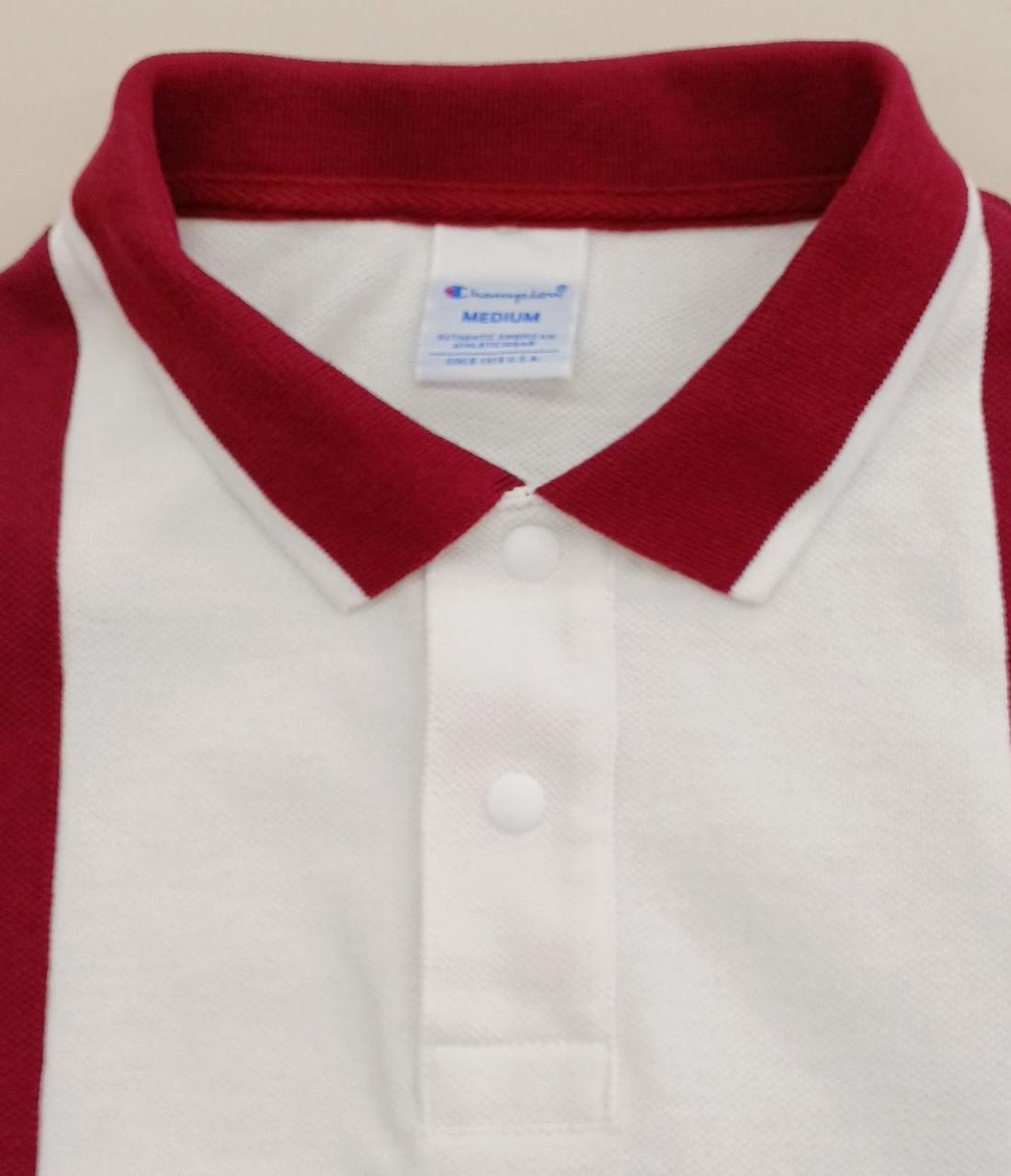 CHAMPIONのポロシャツです。バックにCHAMPIONのロゴがあってとても可愛いです。また袖が七分になっていて着丈も短めで流行りのデザインになっています。目立つ汚れなどなくまだまだご着用頂けるお品です。 |