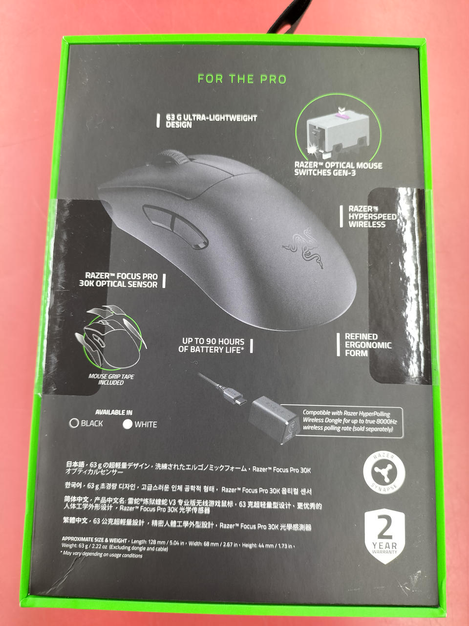 30Kオプティカルセンサー/最大8000Hzポーリングレート/本体重量:約64g