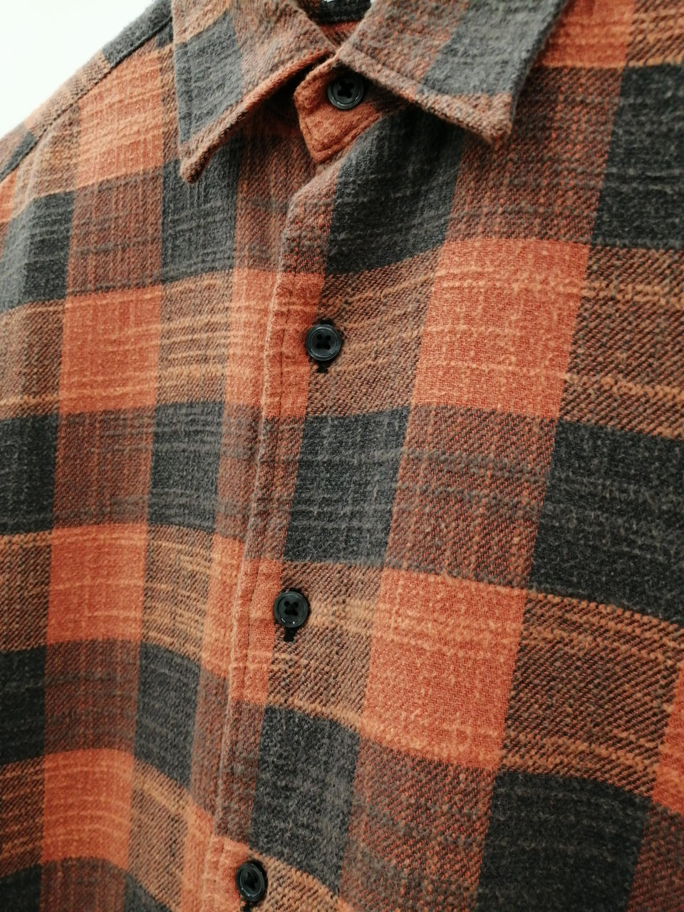 まるで何年も着続けて古びたようなフェイスを、オゾン加工による酸化作用によって表現したコットンチェックシャツ。