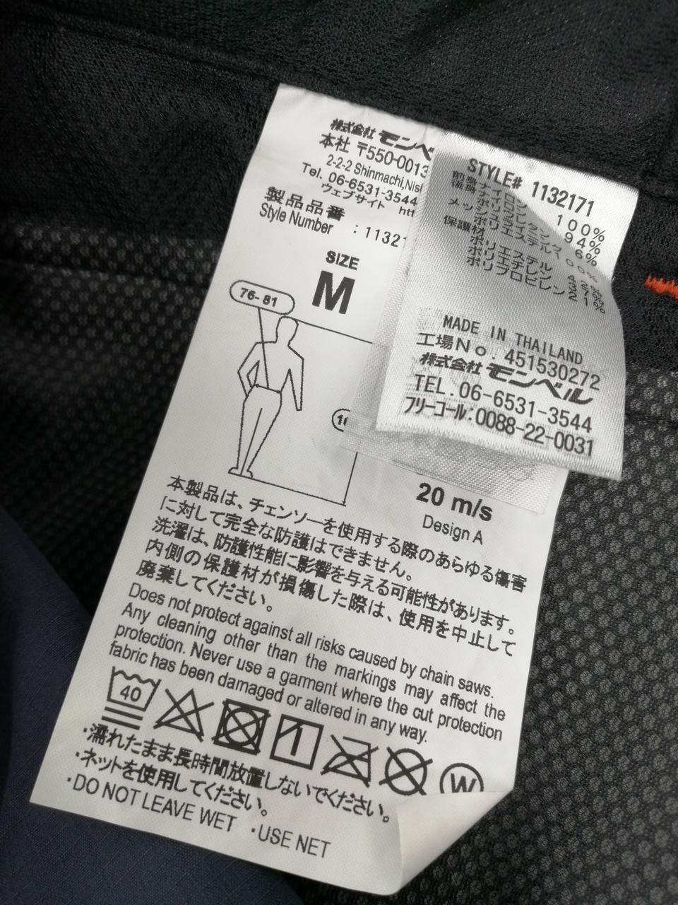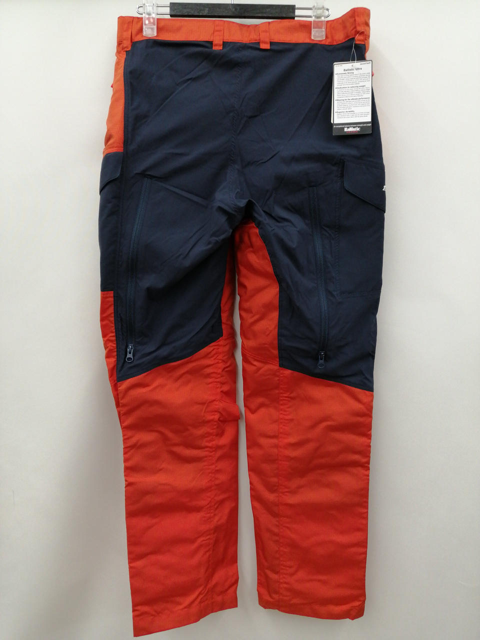 チェーンソーの刃が当たる可能性がある両脚前部に特殊保護材を内蔵した林業用パンツです。