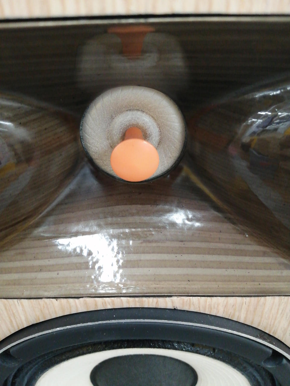 ツイーター振動版にUPEI樹脂を使用し、積層集成材ブロックより削り出したホーンと組合せています。 |