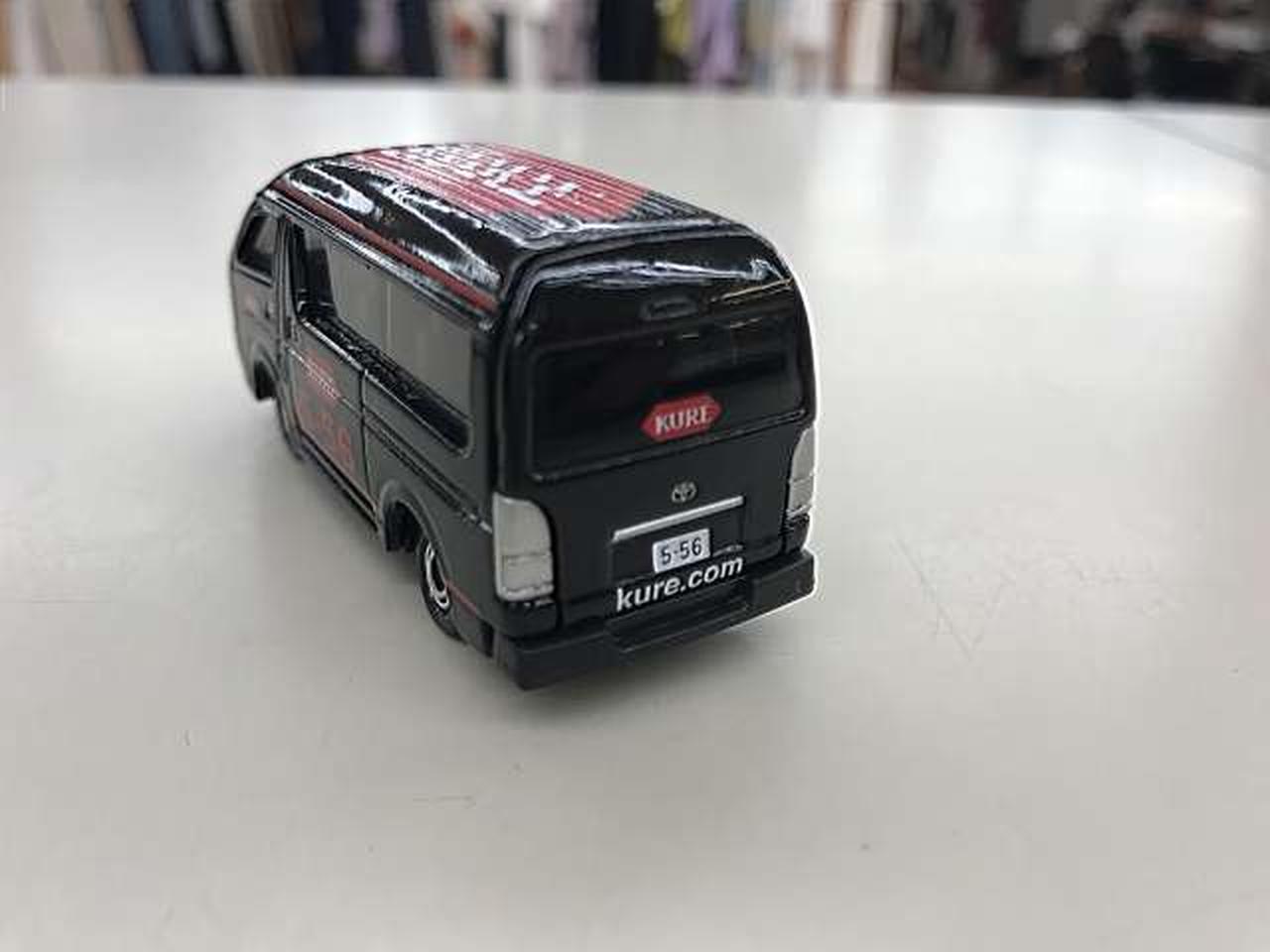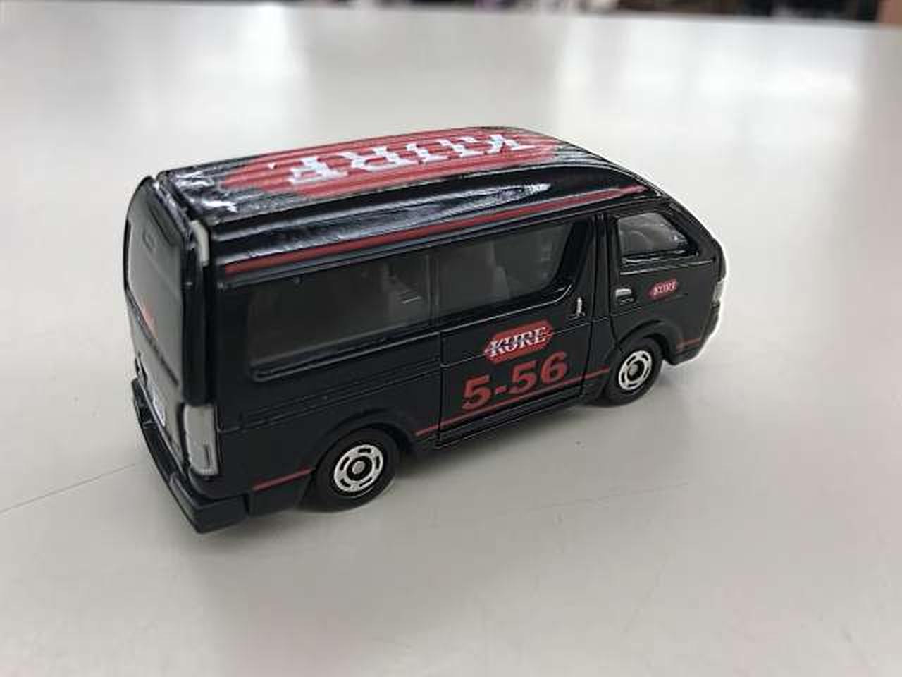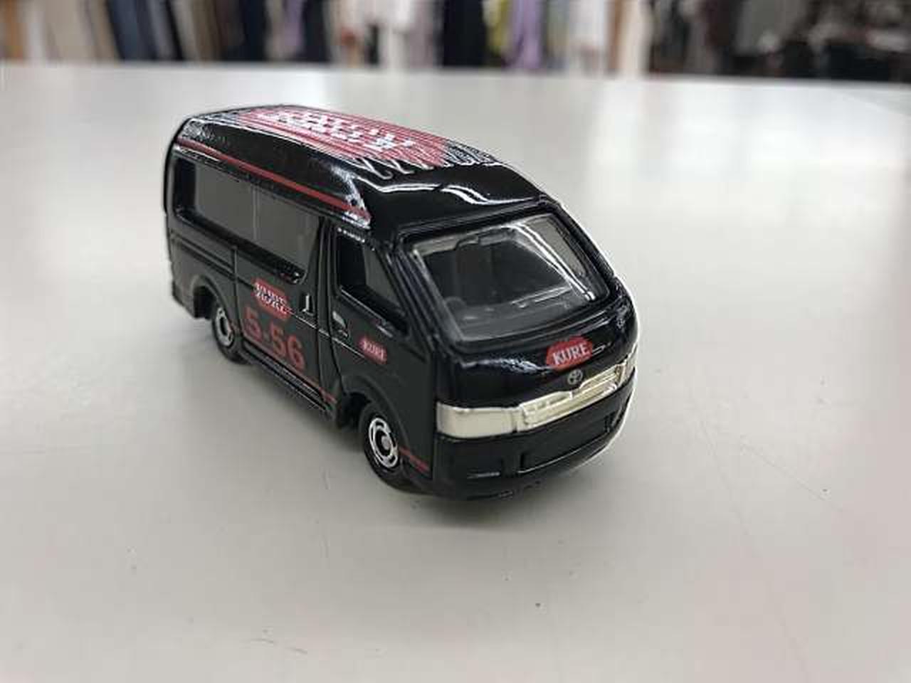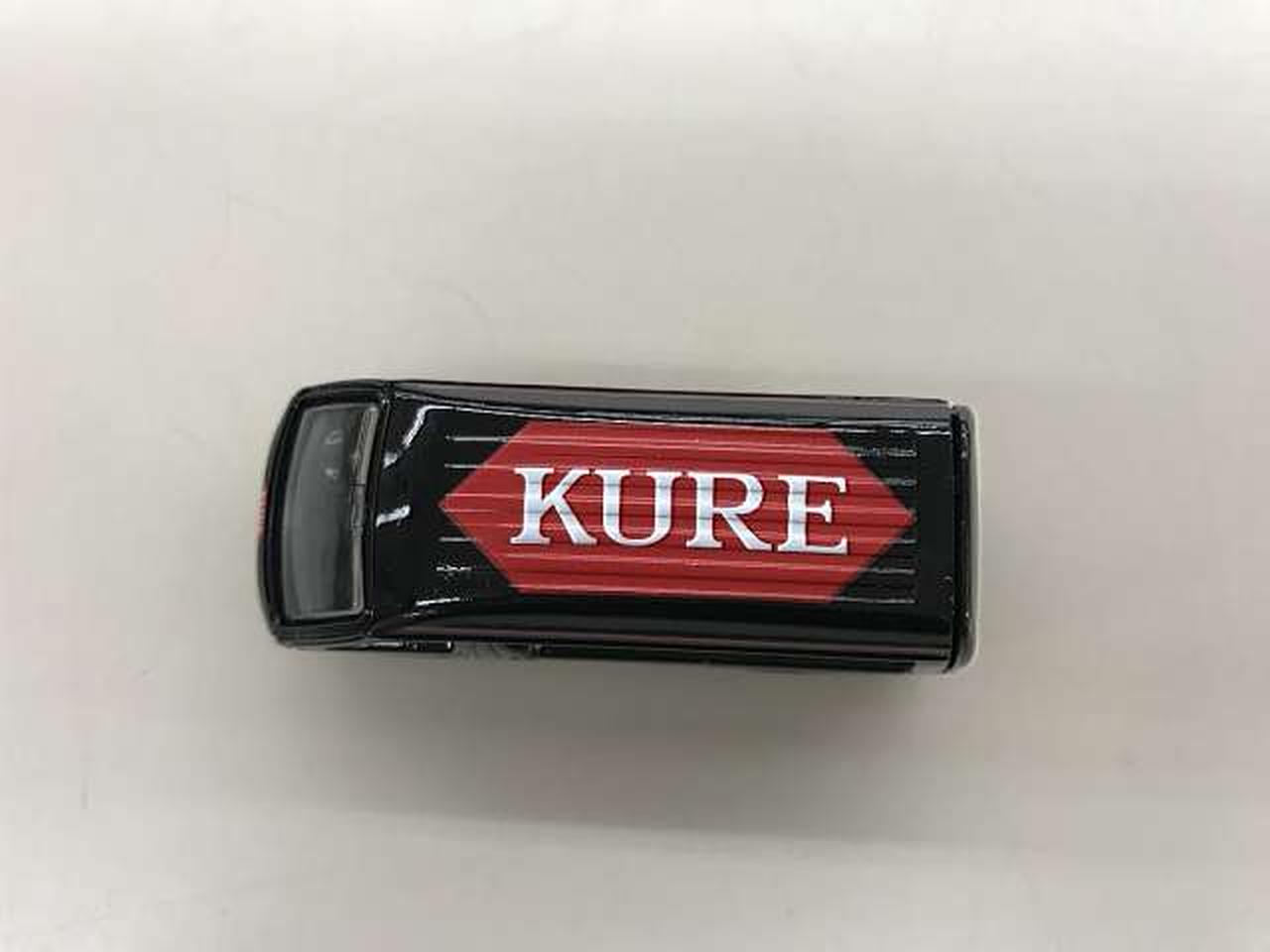 浸透潤滑剤「KURE5-56」でお馴染みの呉工業が、全国のカー用品店などで商品の使い方を実演を交えて紹介して歩く「KURE キャラバン隊」で実際に使われている車両をトミカにしたノベルティ(非売品)です。 |