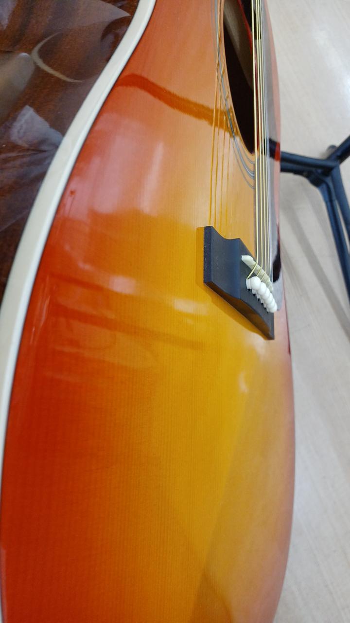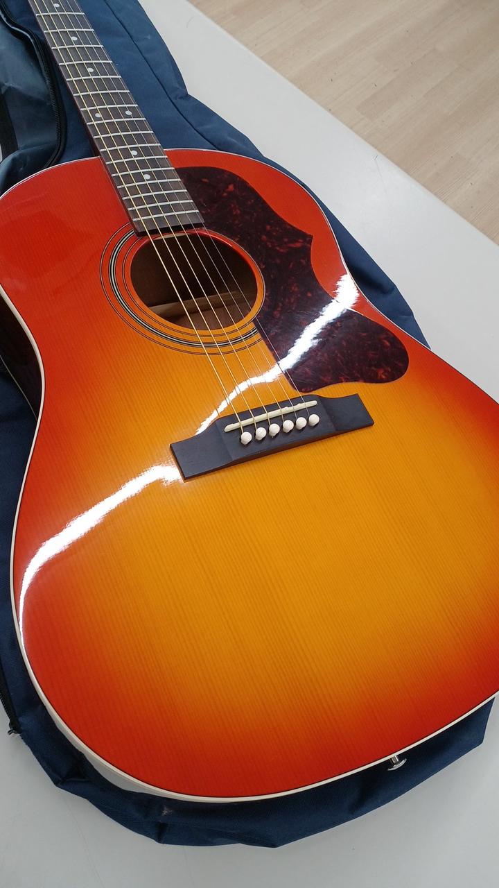 ラウンドショルダー1963年仕様のJ-45をエピフォンブランドで復刻 定番スプルーストップ マホガニーサイド&バック ネック:マホガニー 指板:ローズウッド ラージピックガードに3連ペグと雰囲気たっぷりの一本です! ソフトケース付き |