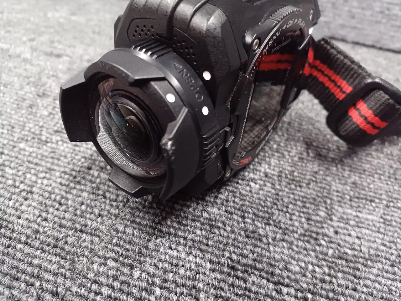 IPX8相当の防水性能やIP6X相当の防じん性能、2mの耐落下衝撃性能、-10度の耐寒性能を備えた、フルハイビジョンアクションカメラ。 |