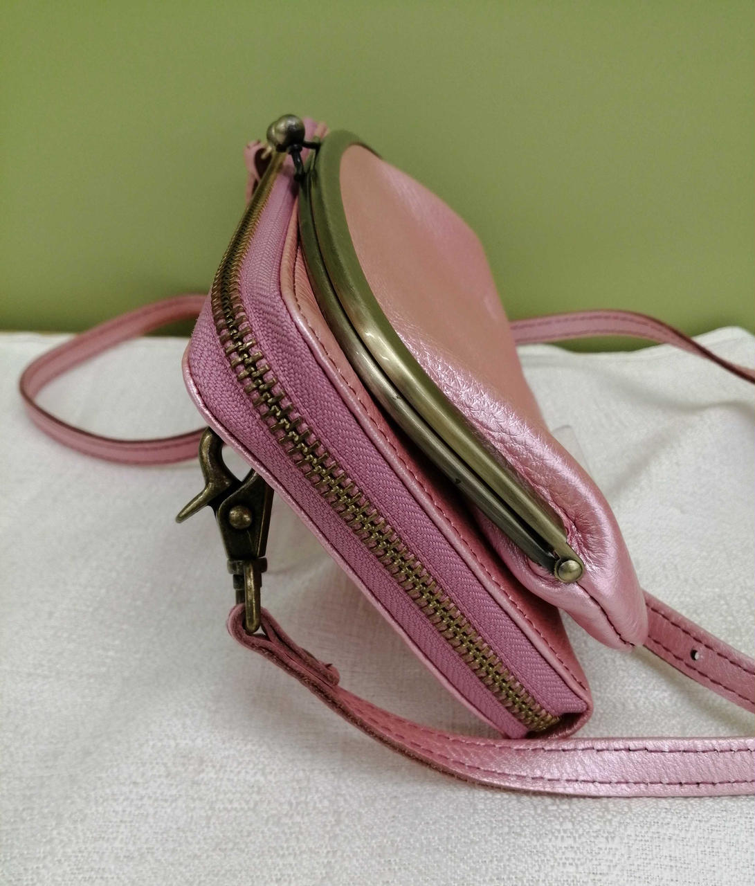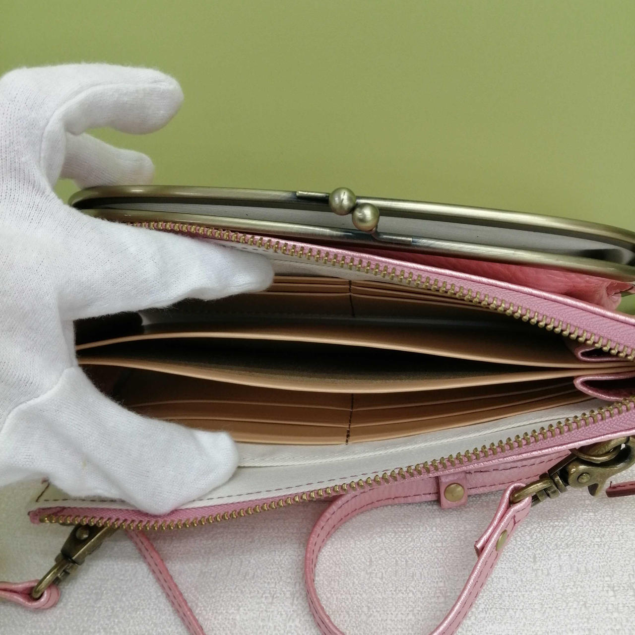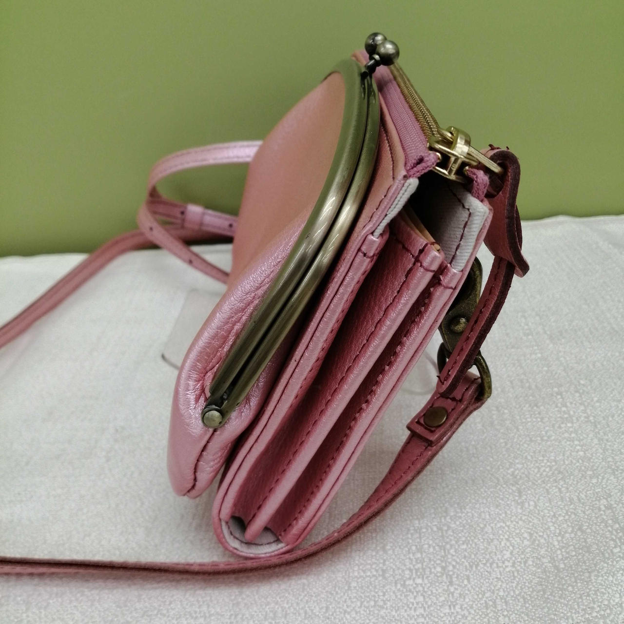 がま口ポーチと財布機能がついた便利なショルダーバッグです。