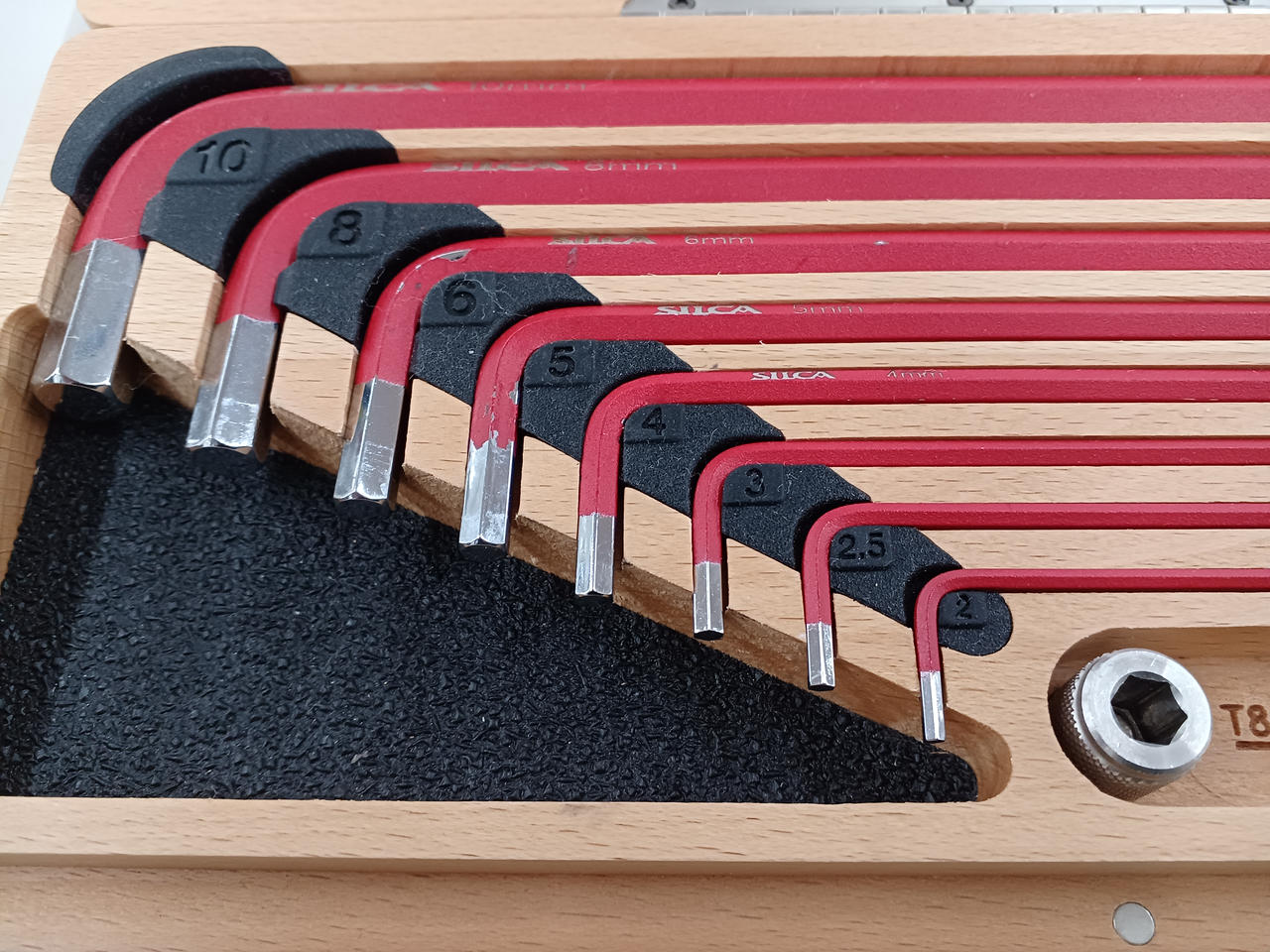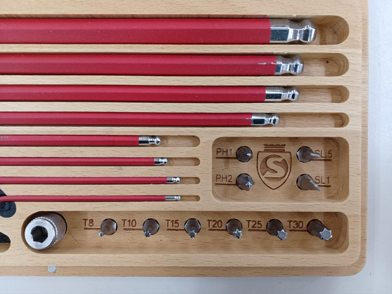 六角レンチと、プラス&マイナスドライバー、トルクスドライバーのビット |