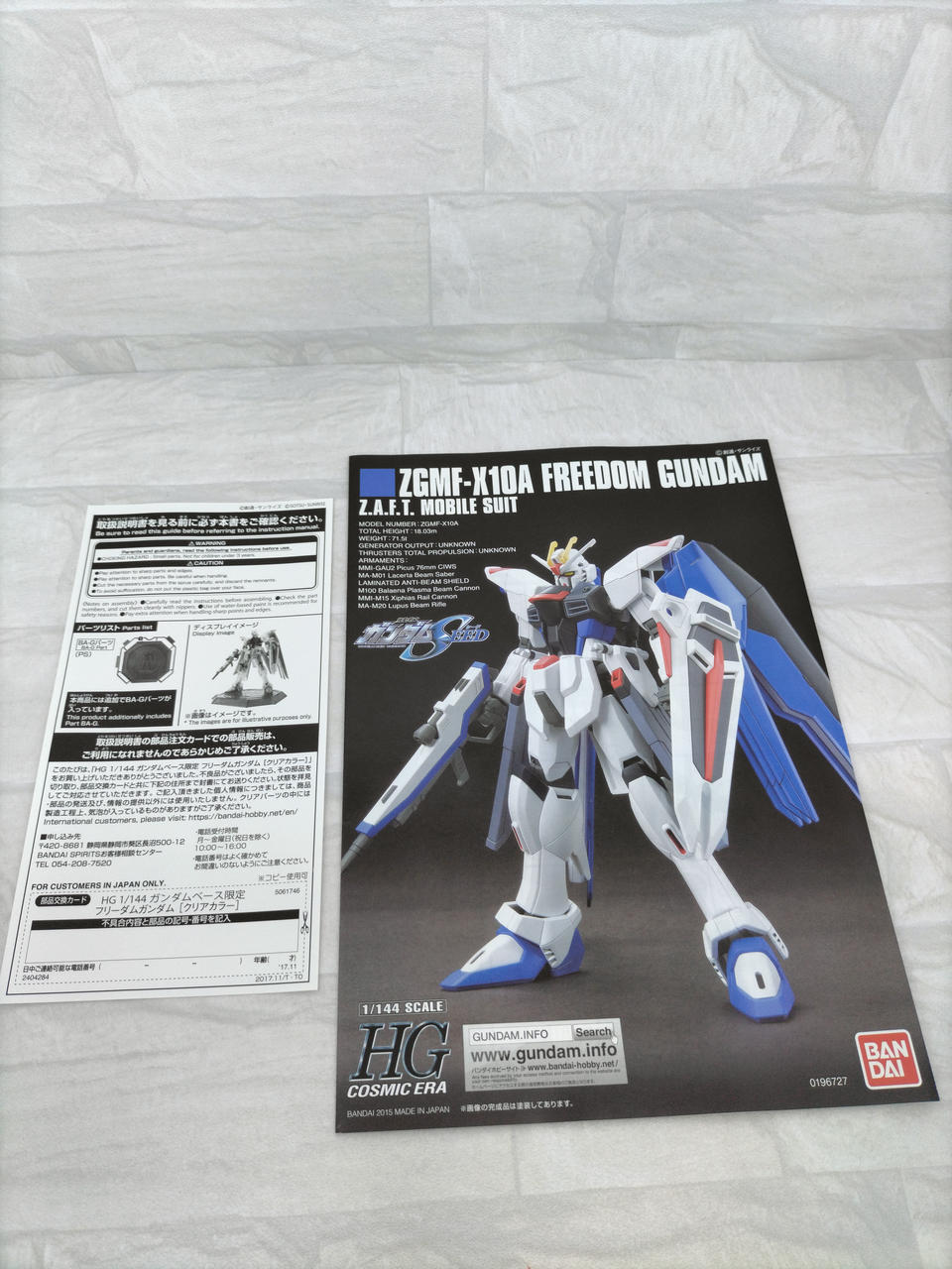「機動戦士ガンダムSEED」より、ZGMF-X10A フリーダムガンダム クリアカラーが、1/144スケールキットで登場です。 |