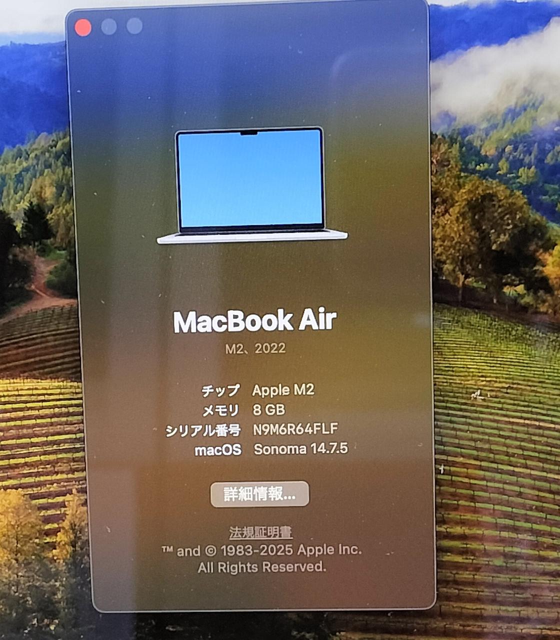 ビデオチップ:Apple M2チップ8コアGPU16コアNeural Engine MACOS:Sonoma14.7.5 |