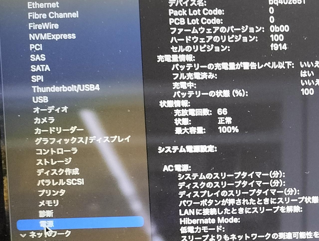 充放電回数:66 状態:正常 最大容量:100% |