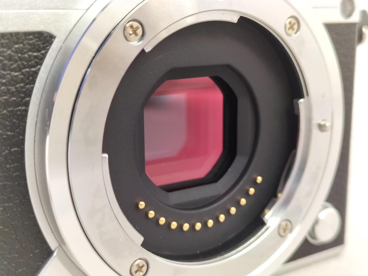 センサー保護ガラスに汚れあり。チェック時点では絞り込んでも影響はありませんでしたが、逆光撮影時などでは写り込む可能性がございます。非常に繊細なパーツとなりますので、ご自身で清掃される際は保証対象外となります。 |