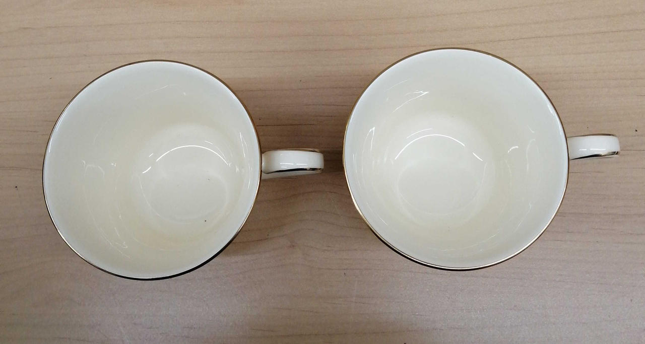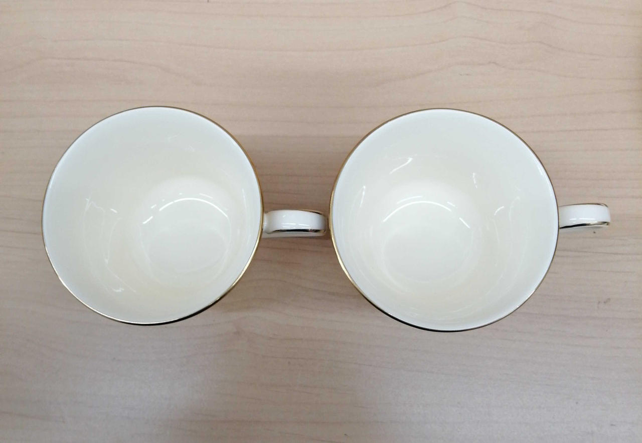一見キレイに見えますが、間近で見るとキズや金彩の変色などダメージが見られるのと、一部小さい点のような黒い出っ張りが見られます。(写真枚数制限のため、全てのダメージは載せておりません。 |