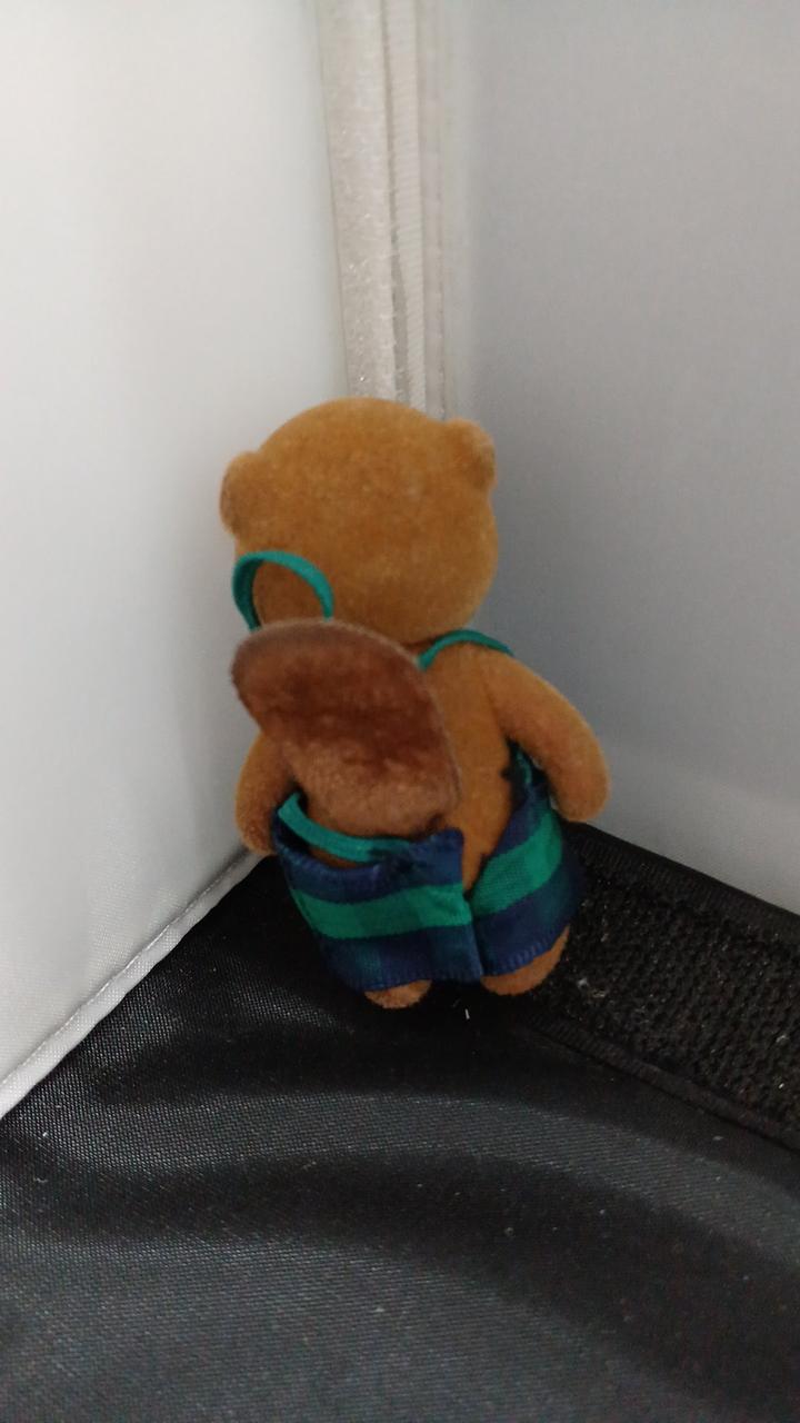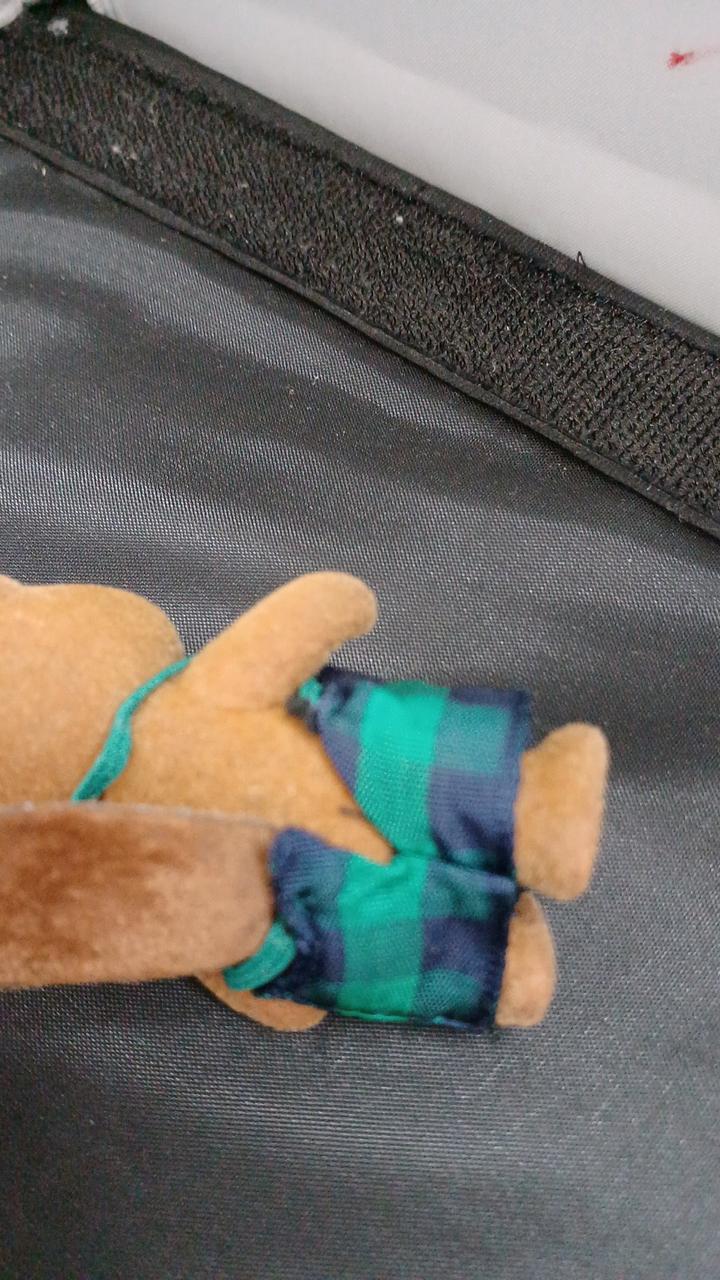 衣服のボタン外れ、紐のたわみがあります。全体的な劣化あり。 |